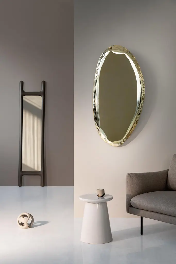 Drab Mirror By Zieta, Carbon Steel Beige Matt