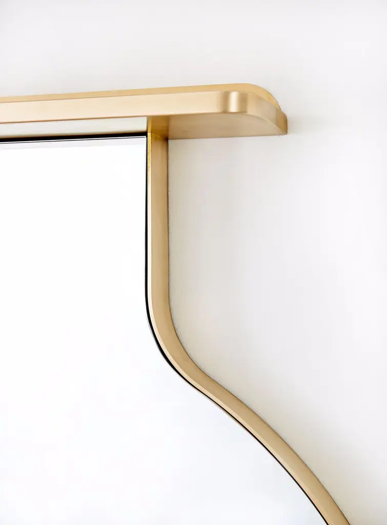 “Drip Drop Mirror”, Minimalist Brushed Bronze Wall Mirror With Shelving