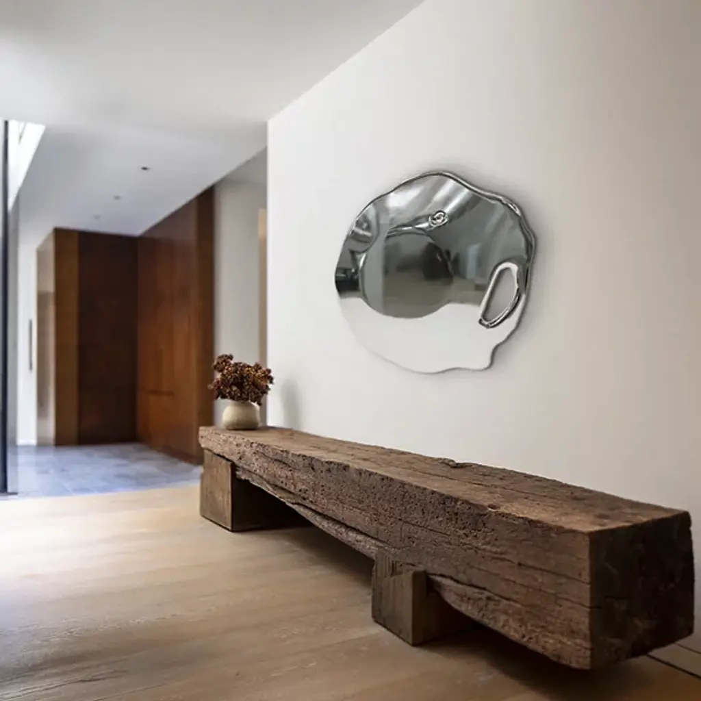 The Drip Mirror from Forma Rosa Studio is a bold statement piece that fuses fluid design with exceptional craftsmanship. Hand-cast in polished bronze or stainless steel, its organic drip-like form transforms a simple mirror into functional art. Designed by Maria Castillo Irribarren and Santiago Braby Brown, it radiates elegance and strength, creating a captivating focal point in any room.
