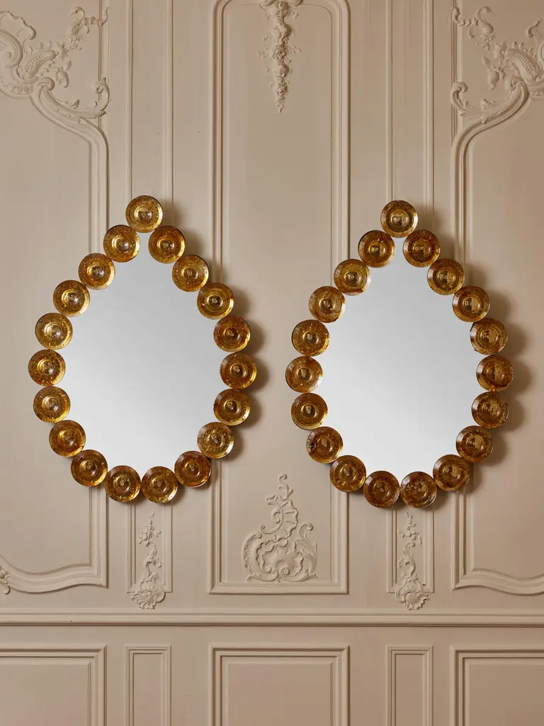 Pair of "Drops" mirrors with frame in sculpted Murano glass.Creation by Studio Glustin