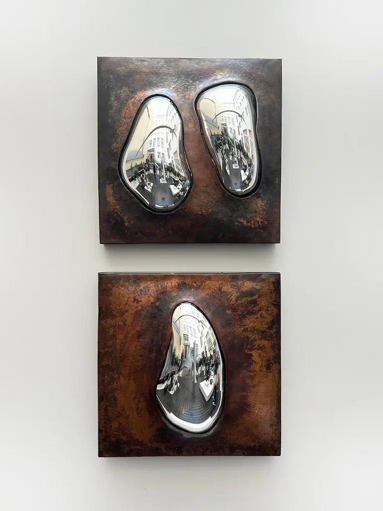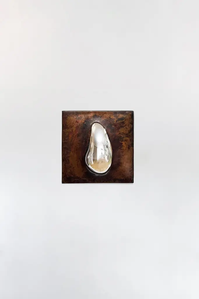 Drop of Silver on Copper VI Mirror by HomaDimensions: W 49 x D 5 x H 49 cmMaterials: Blown Glass. Silver Mirror. Copper Frame. HOMA is a contemporary design atelier based in Istanbul. The atelier’s trademark processes are handblown glass, glass fusing and mirroring, created through the use of multidisciplinary techniques and materials. Over time, with meticulous research and experimentation HOMA has acquired unique expertise in mirrors, lighting and home interior objects thus elevating things of function to the status of art. Handcraft HOMA has discovered one of the last remaining masters of handcrafted mirroring in the Eastern Mediterranean. The atelier is original in its simultaneous use of different techniques to create organic and flowing mirror shapes. Each piece celebrates reflection, translucency, movement, light, time, multiple layering and aesthetic, spontaneity…Object HOMA’s pieces are an exploration of organic, abstract, as well as unexpected flowing lines and shapes. Our design service offer is presented in a catalogue of over 50 designs in fluid and geometric shapes achieved through multidisciplinary techniques.Materiality Through the use of mixed textures and the layering of mirror elements unexpected effects are created on glass, which play with one’s visual perception as well as the surrounding space. Glass, stone, marble, messing mirror techniques, bronze, wood and clay are just some of the Earth’s materials that find their way into HOMA’S offerings. HOMA offers a vast materials library.Architecture Formally trained in interior architecture, HOMA founder, Tuğba Koç has transformed her knowledge and experience into layered aesthetic design objects. Now, with a team of architects and artisans, Tuğba applies her hands in a workshop environment on interior and exterior objects to enrich earth-derived, breathing, living materials. HOMA’s interior objects are informed by art and driven by the philosophy that nothing artificial should be allowed to interfere with the energy of one’s living environment.