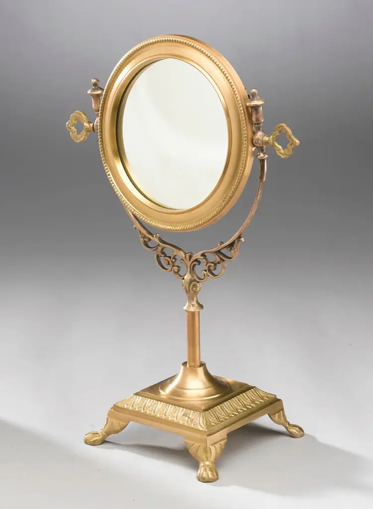 This mirror makes an eye-catching statement with its interesting duck leg design. Its petite size and oval-shaped mirror are ideal for styling on the vanity or countertop for an elegant, textured touch.
