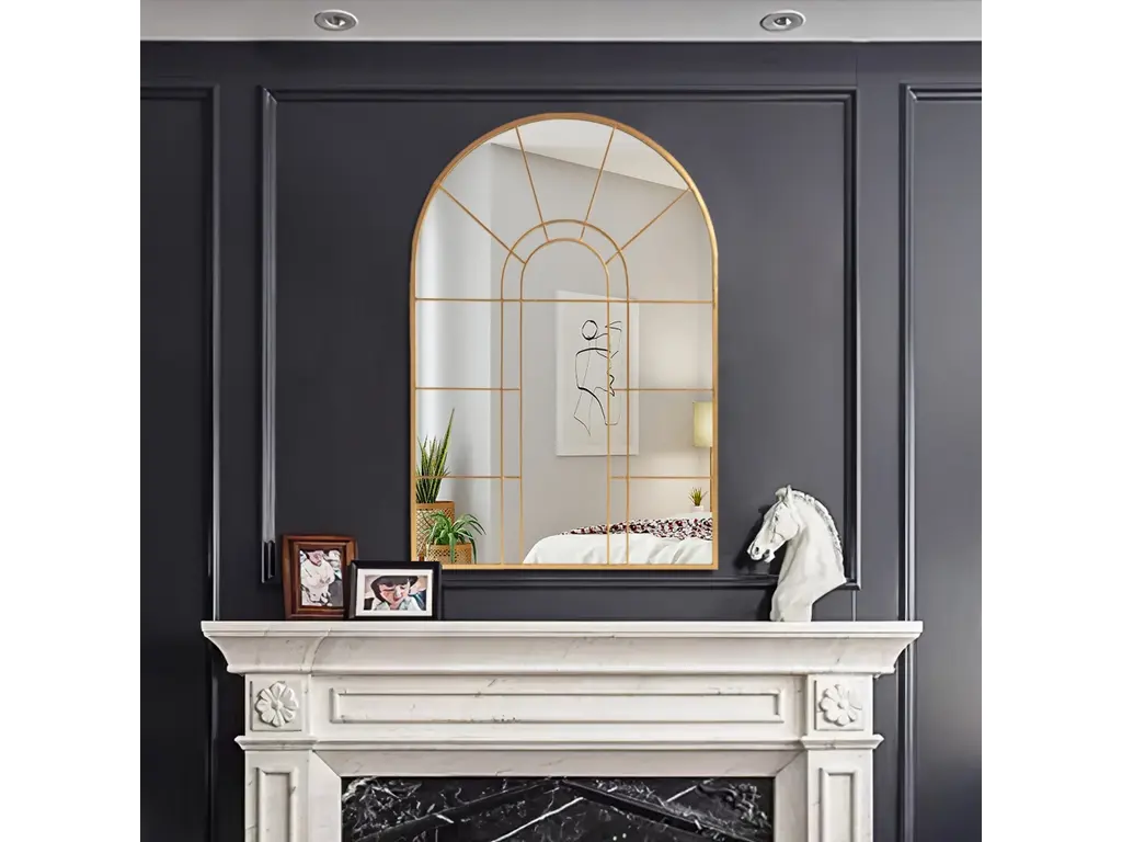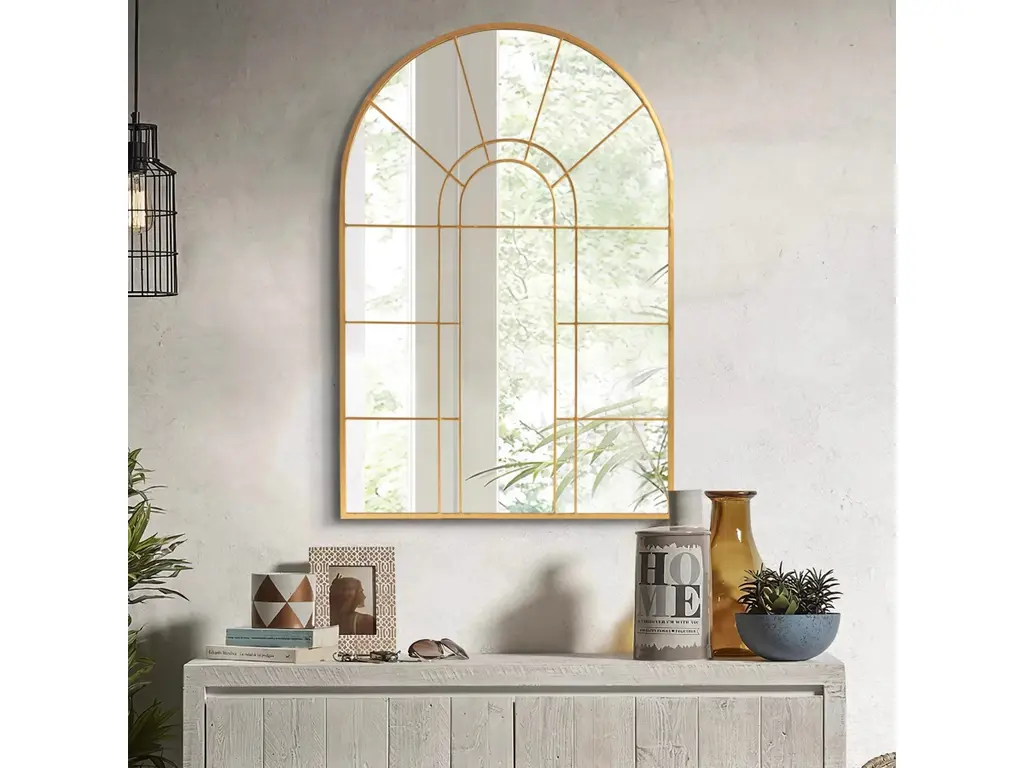 This Arch-Top Wall Mirror is a captivating fusion of rustic charm and practicality that seamlessly complements any room in your home. This mirror boasts a distinctive window-inspired design, infused with an extra touch of elegance. Crafted with a durable frame, it guarantees longevity and years of reliable service. The arch-top silhouette enhances its allure, making it an ideal decorative accent for a touch of antique sophistication.