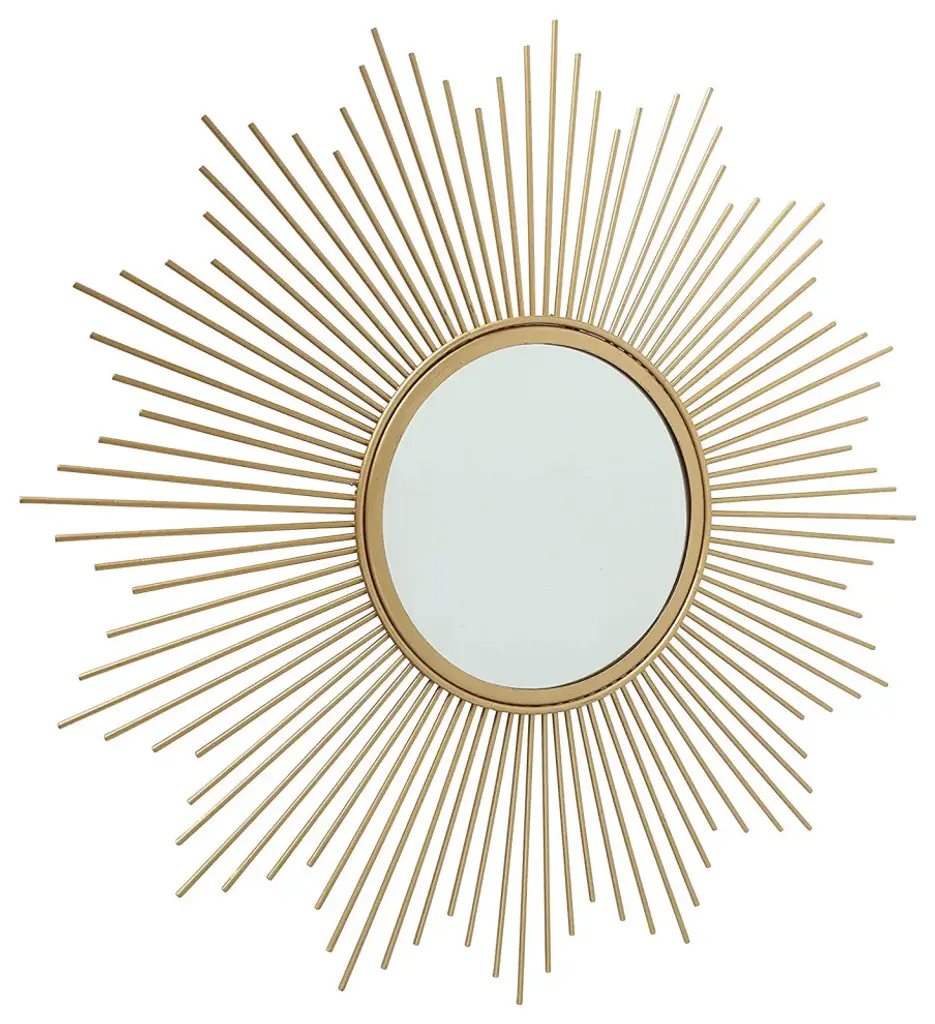 With a light and airy interlocking pattern, this mirror adds a reflective glow in grand scale. In a warm golden finish, it is a refined look.