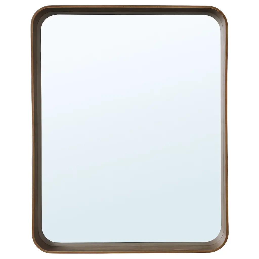 DVÄRGSYREN Mirror - walnut veneer 15 ¾x19 ¾ ". Easy to match with furniture and other wall decorations that have a walnut finish. Can be hung horizontally or vertically. The frame around the mirror forms a shelf where you can place your make-up, a mobile phone or wallet.