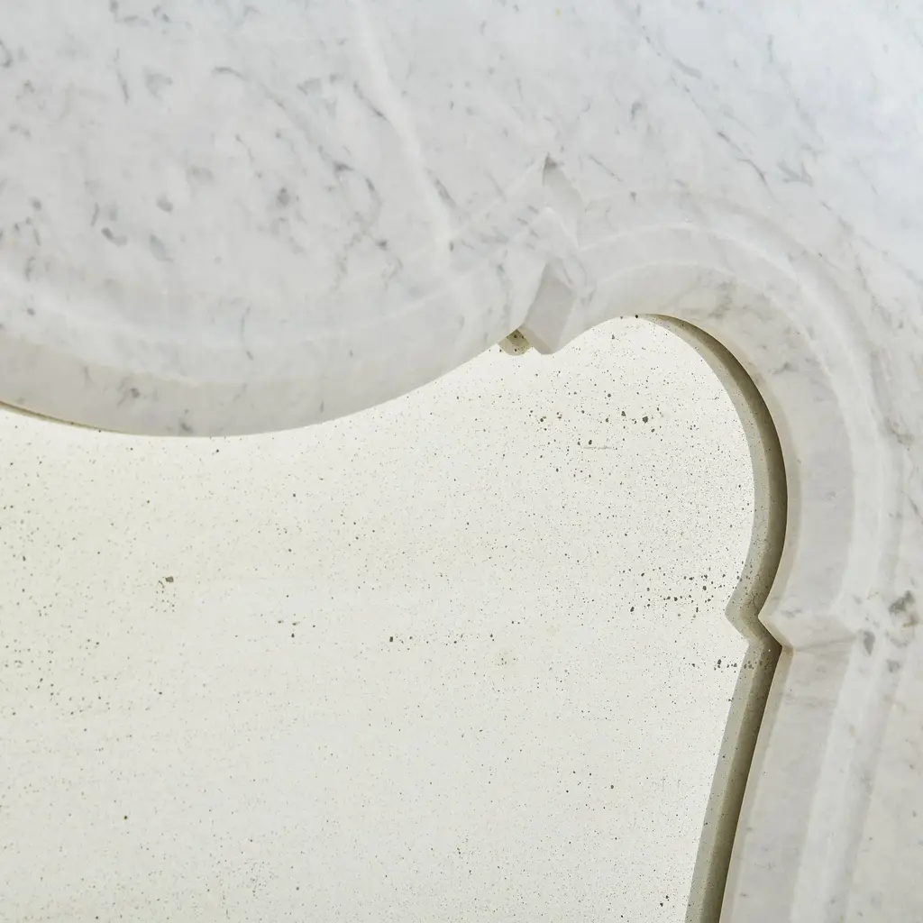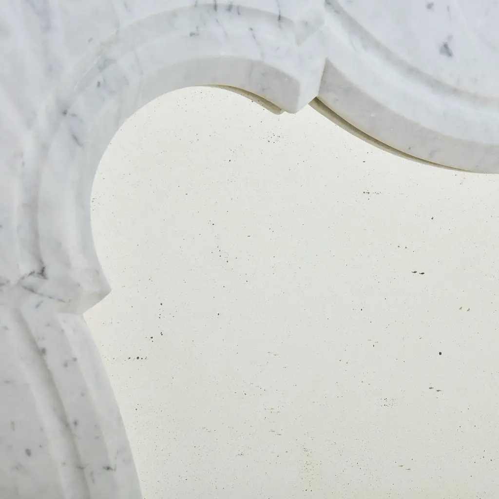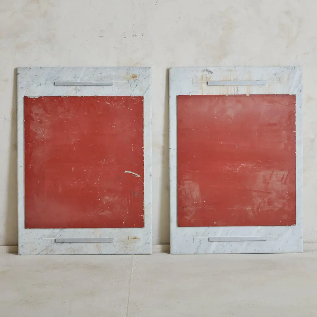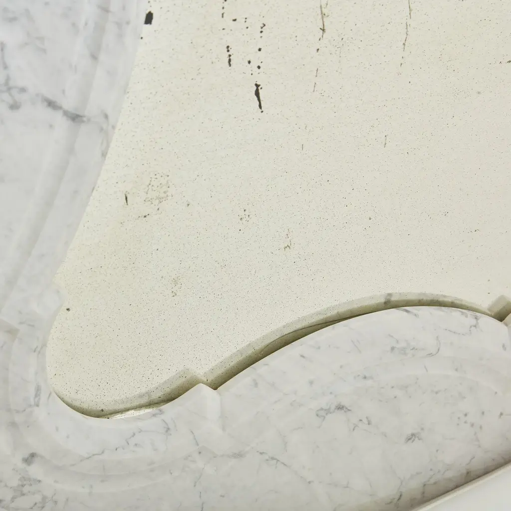 Sourced in the South of France, this Carrara marble mirror came from a Bistro in the region. It appears to be from the early part of the 1900’s. Originally it had a carved wooden frame surrounding the marble which appeared to be hand crafted; the wood frame was likely custom built to the specifics for the bistro. The marble was hand carved and shows gorgeous detail along the border; a true work of art. Ready to hang with a French cleat. Two are available, priced individually. DIMENSIONS: 39”H x 27.75”W x .75”D