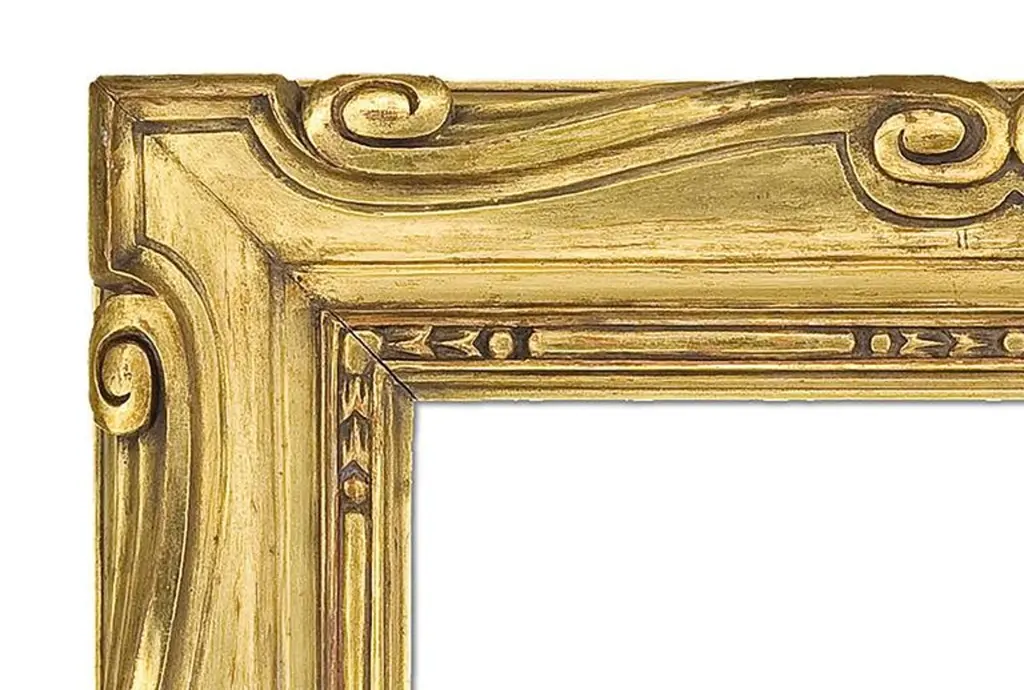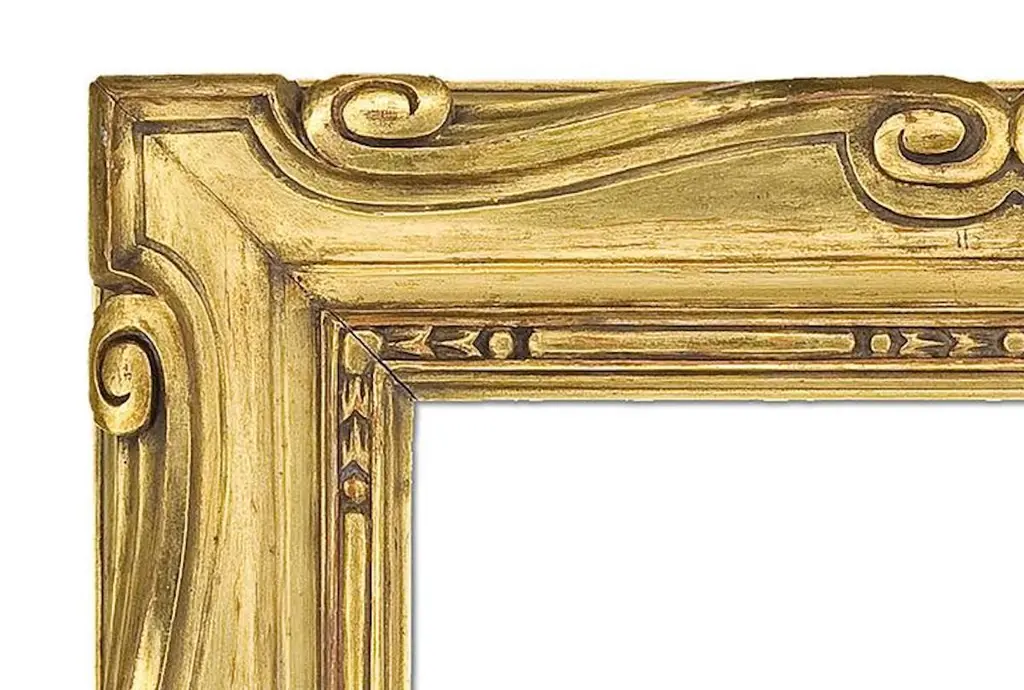 Early 20th century style Arts & Crafts carved and giltwood mirror in the Sansovino style. Measures: 31" x 27". Available in different sizes, please inquire.