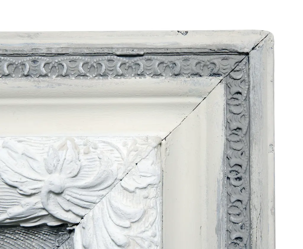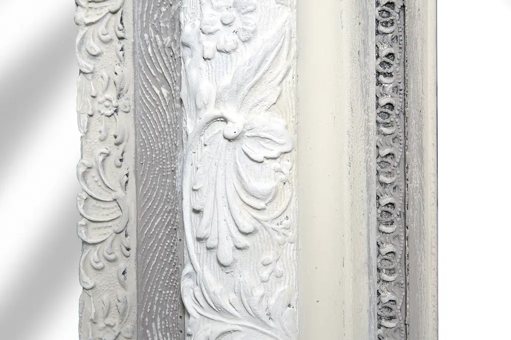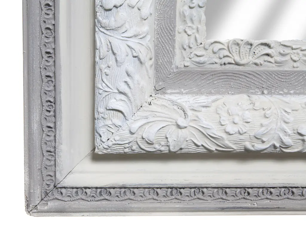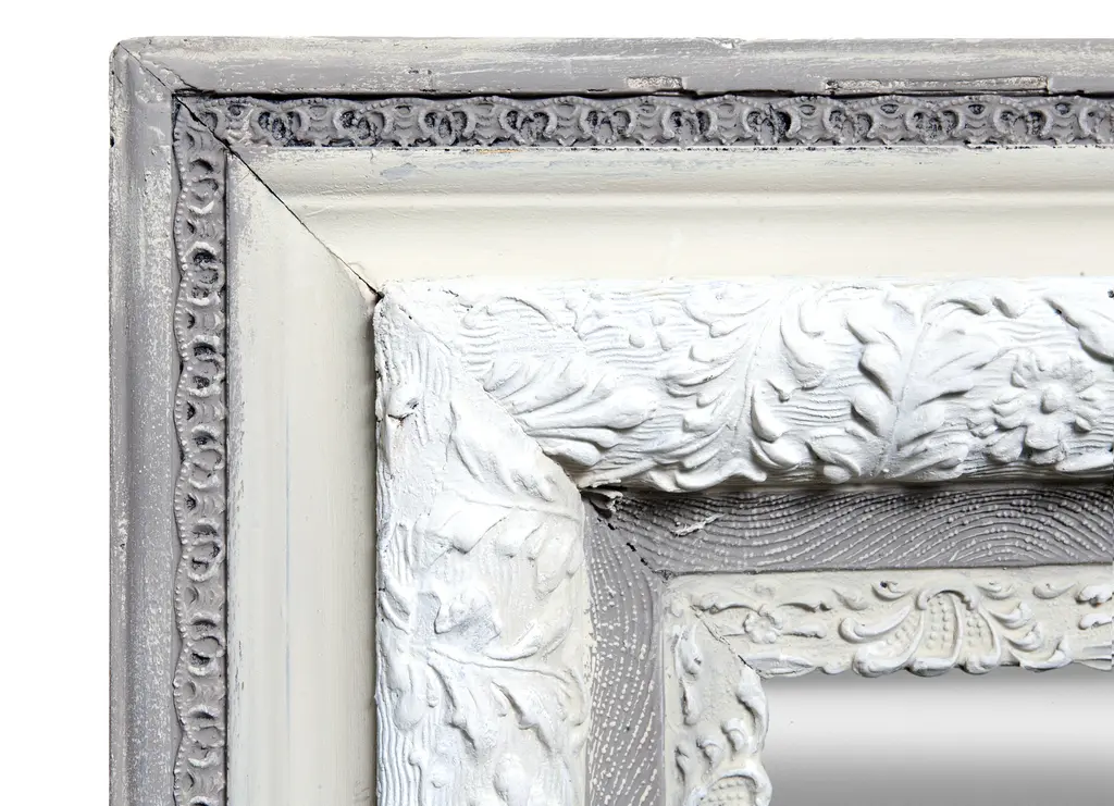 Beautiful Victorian mirror in a multi dimensional frame. The inner frames have been painted in neutral shades. Each insert frame has an intricate design & paint. Wired for both horizontal & vertical hanging.