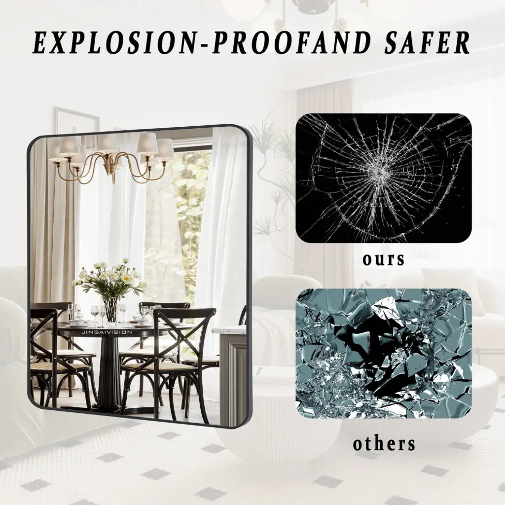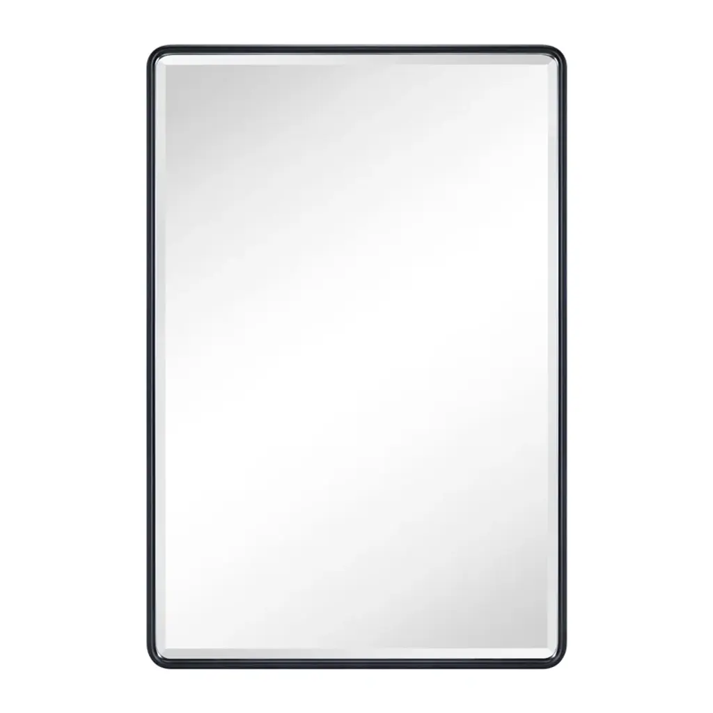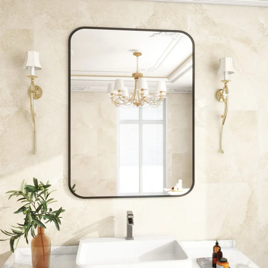 Easly Aluminum Alloy Framed Rectangular Rounded Oversized Wall Mirror, Black, 30x39