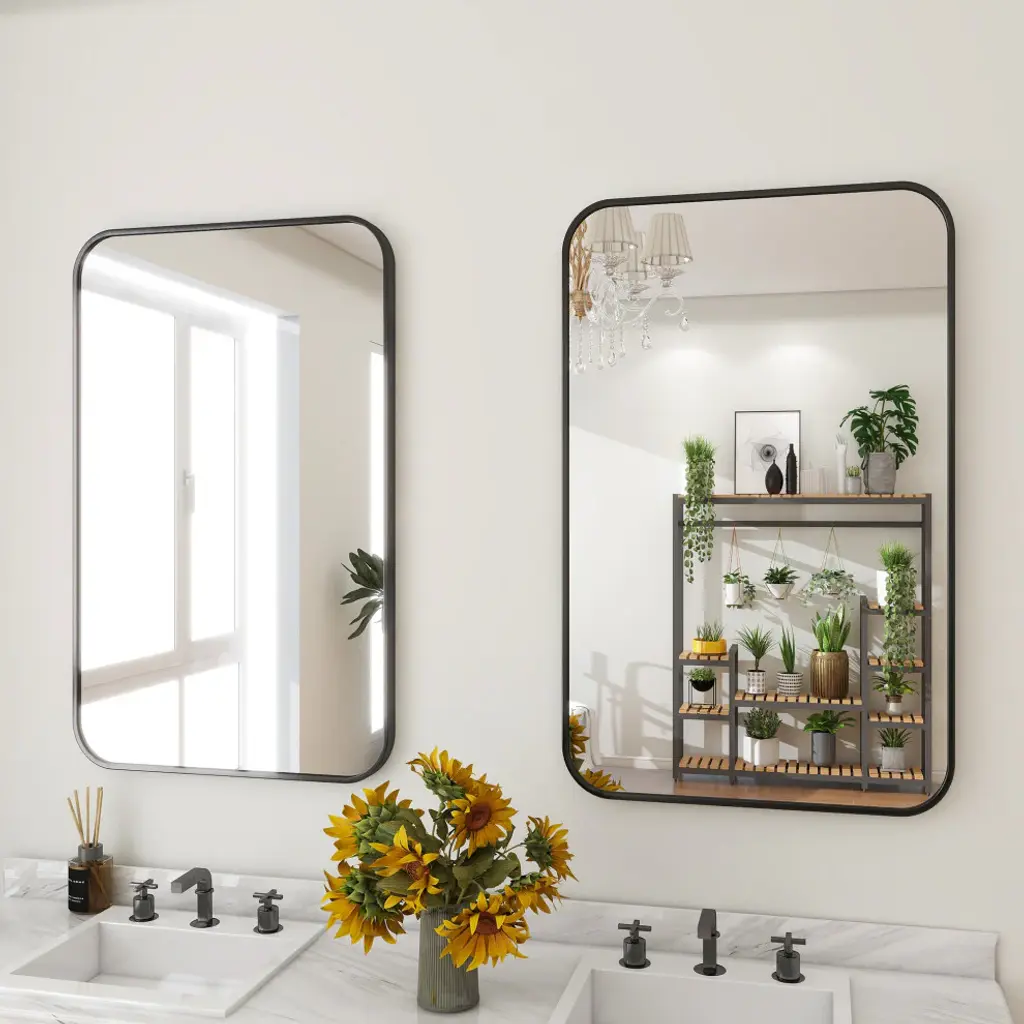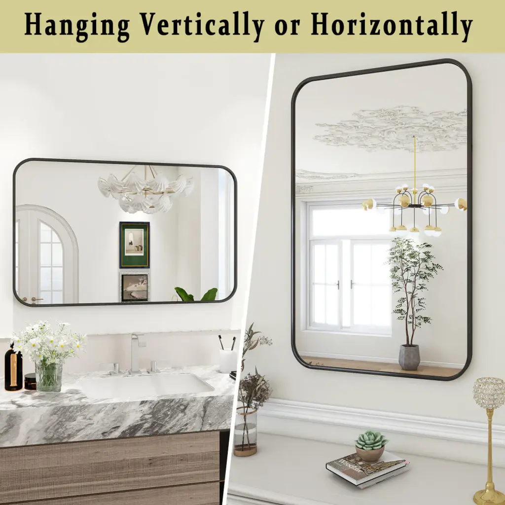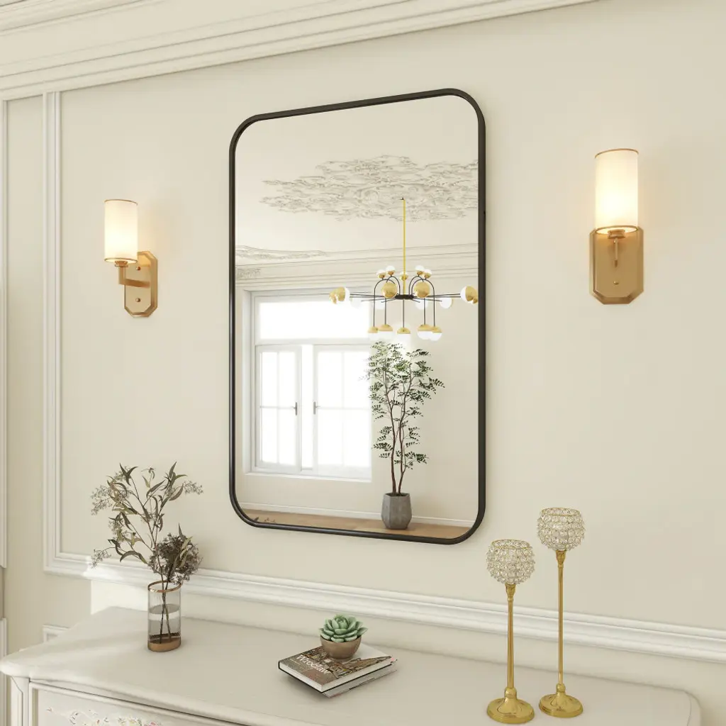 Easly Aluminum Alloy Framed Rectangular Rounded Oversized Wall Mirror, Black, 30x47