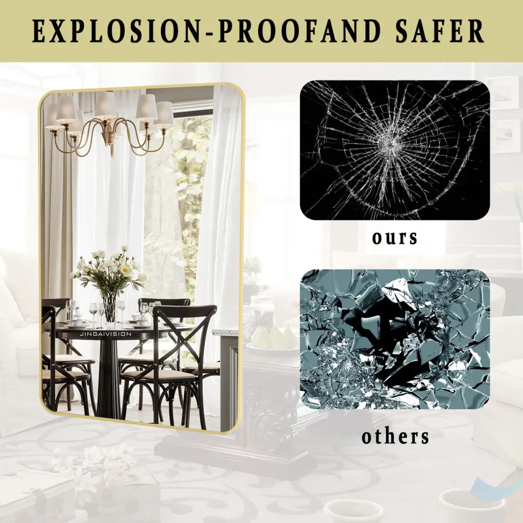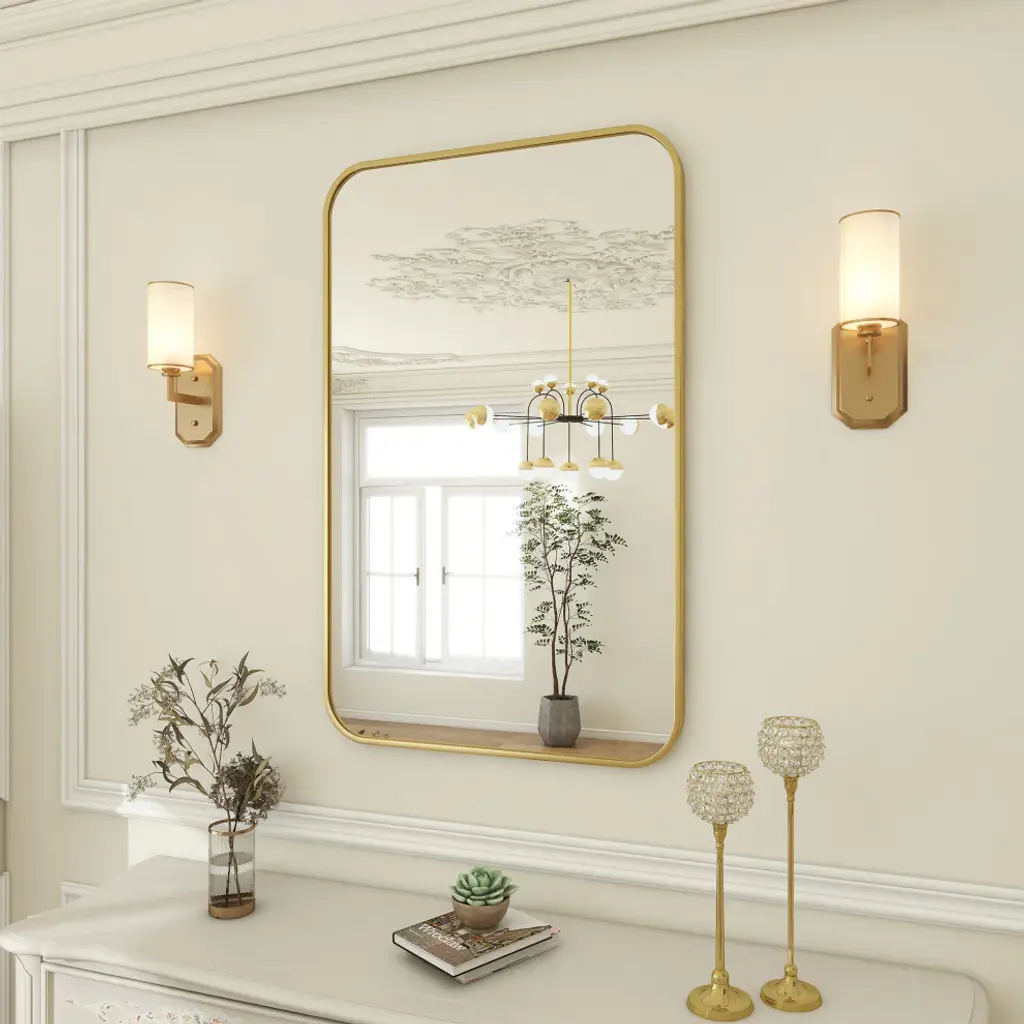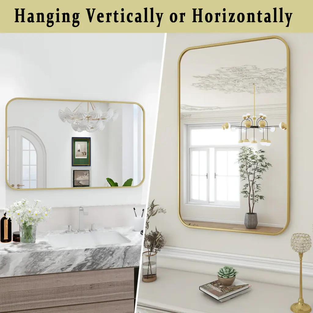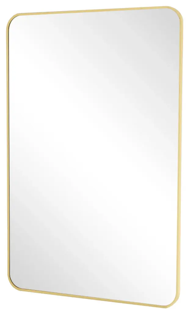 Easly Aluminum Alloy Framed Rectangular Rounded Oversized Wall Mirror, Gold, 30x47
