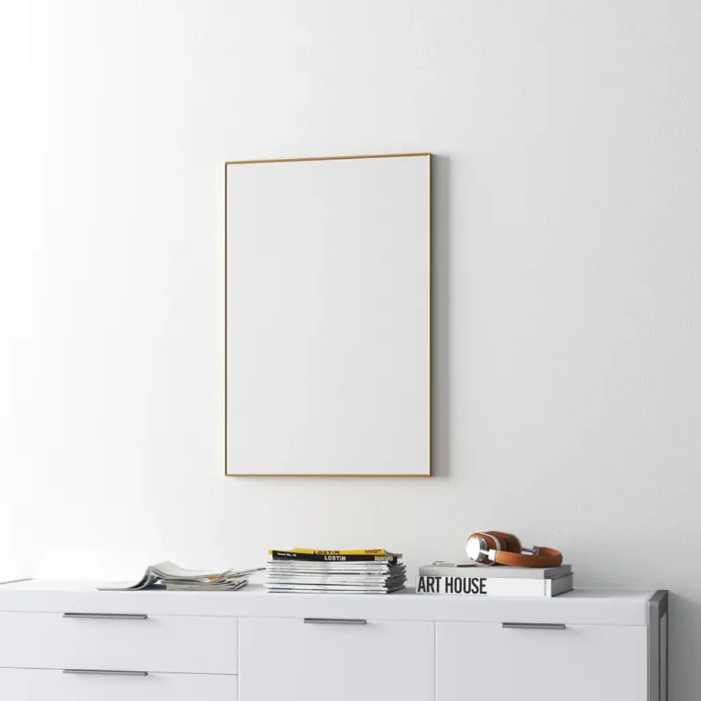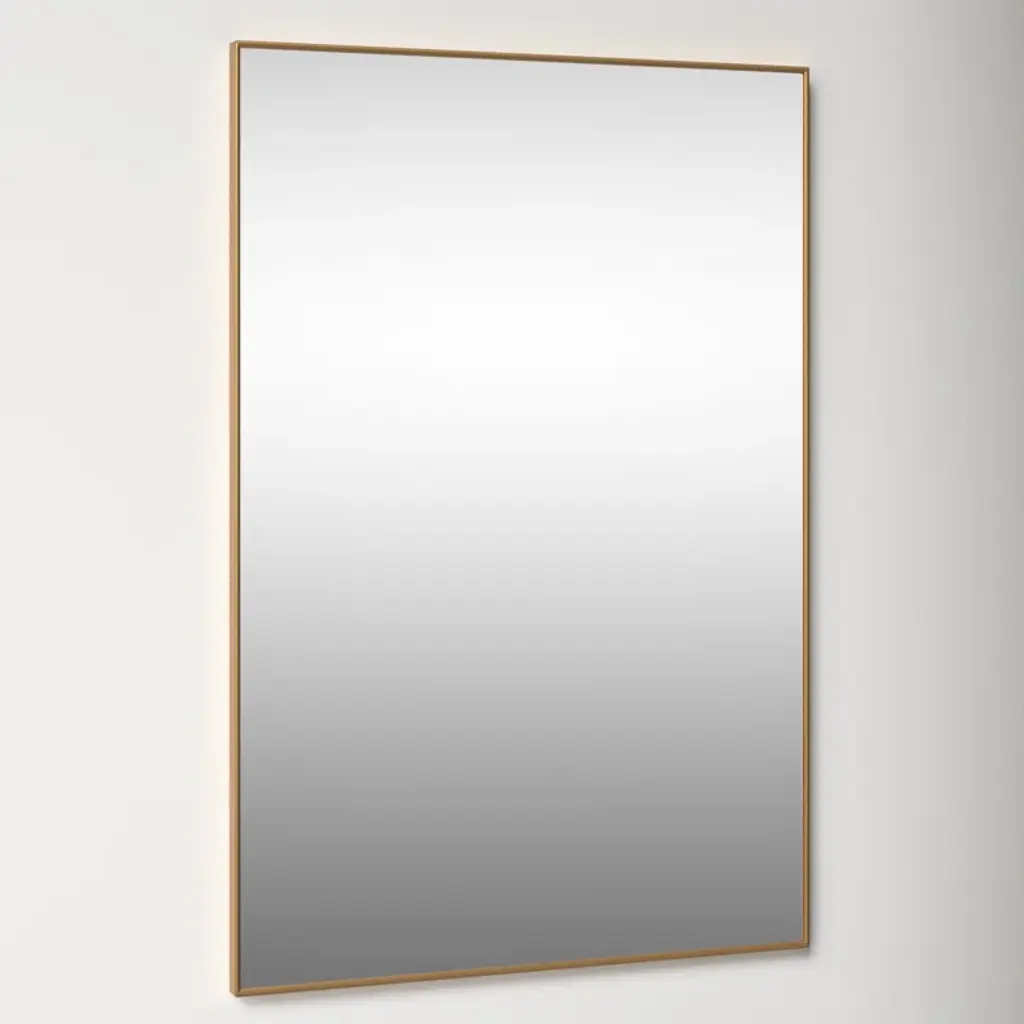 Brightness, depth, and clarity. With its timeless rectangular shape, generous size, and slender metal frame, this mirror opens up your space like an extra window + gives you a place to check your hair. It features a fog-free finish and hangs horizontally or vertically from included D-rings.