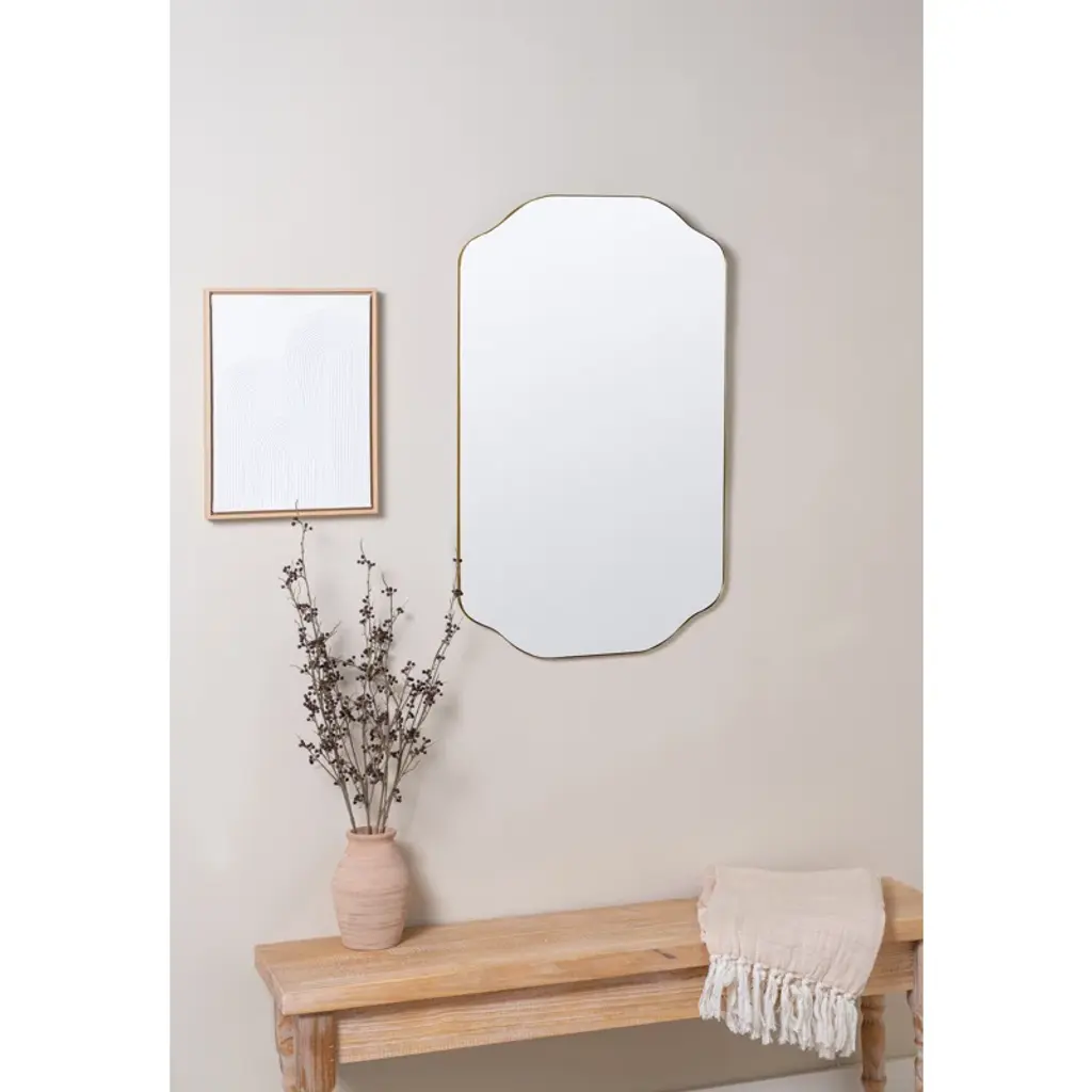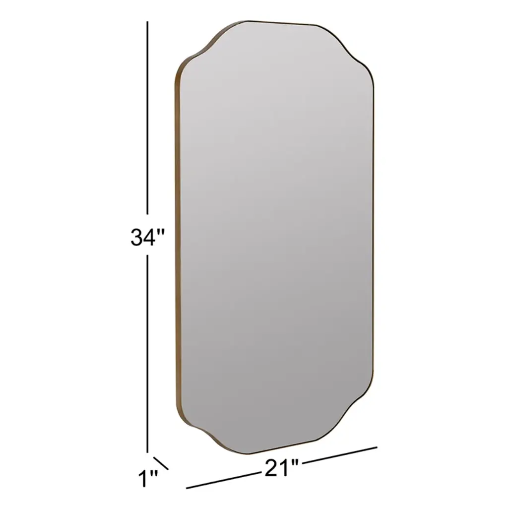 The beautiful gold wall mirror features an intricate hand-finished frame. This piece is sure to add a statement to a space of any style.