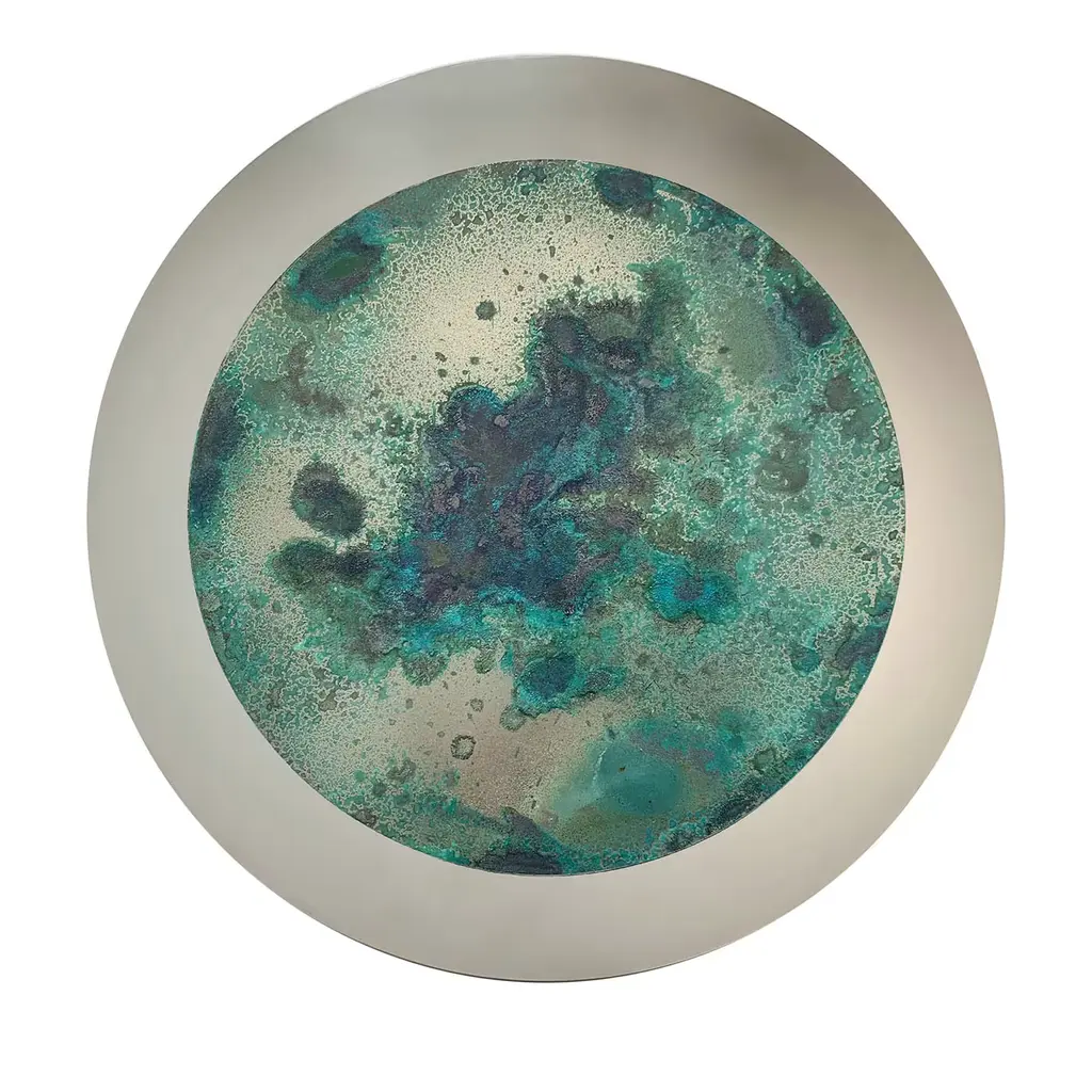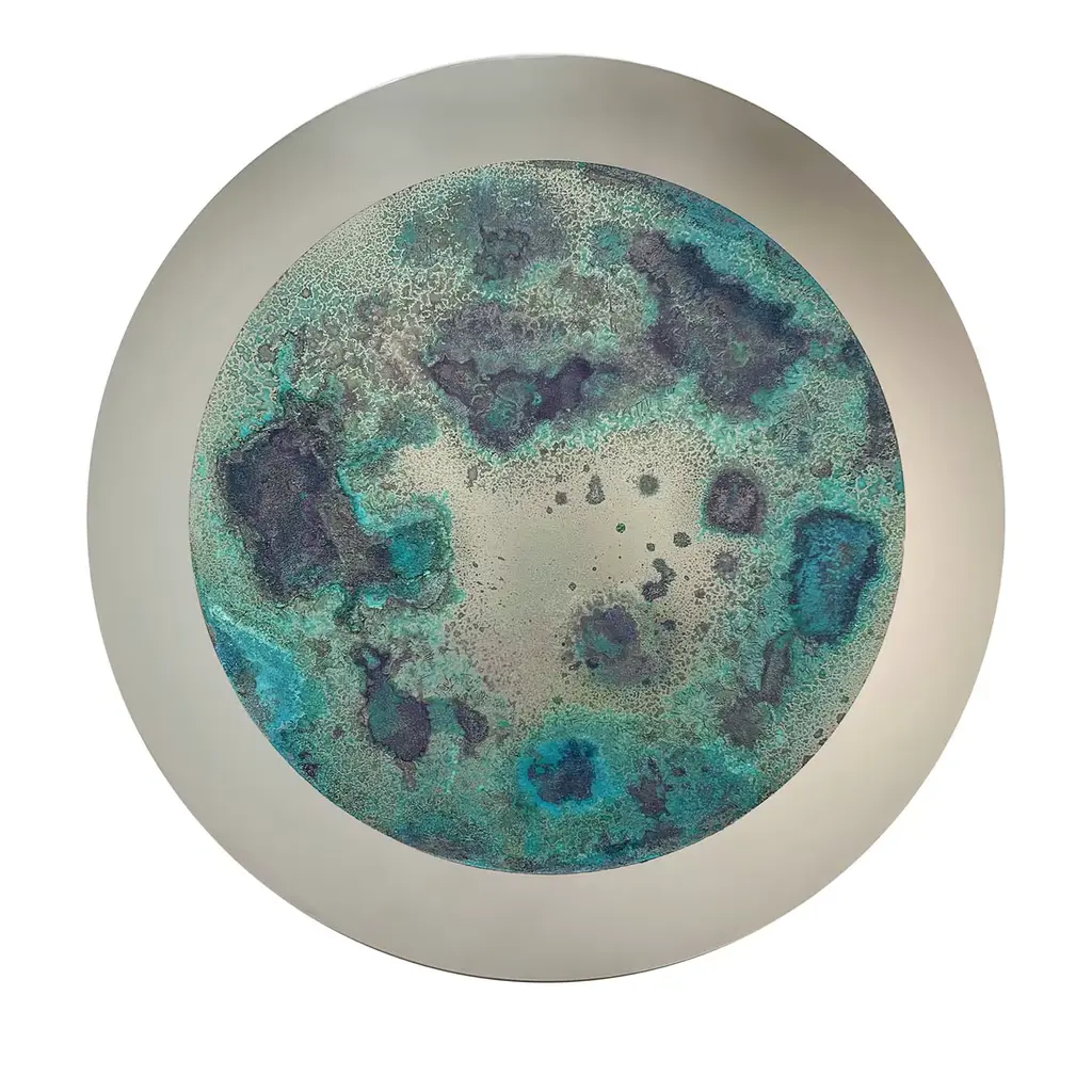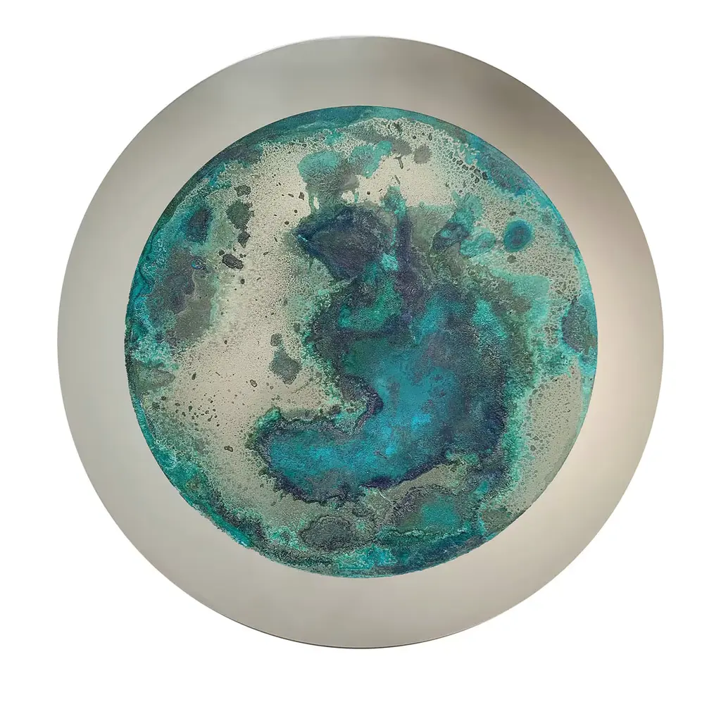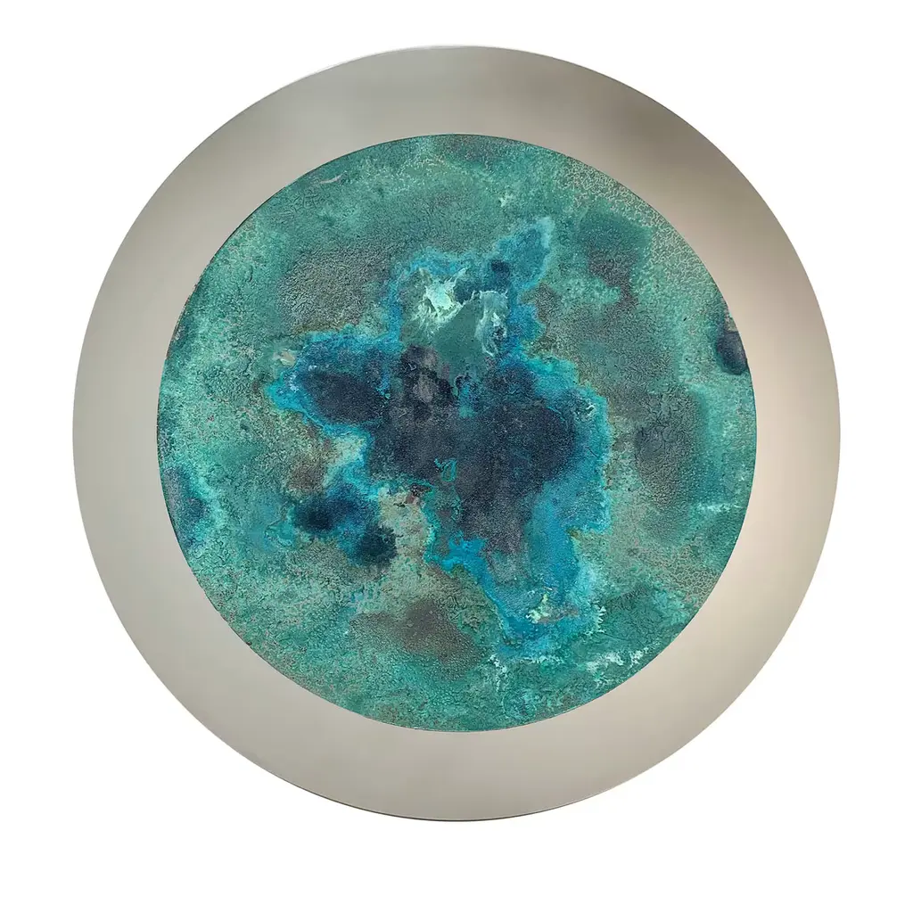 Exclusively at abc, this handmade mirror showcases an industrial design ethos reflective of its local urban origin. Inventive manipulation of mirrored glass creates the dripping, discordant pattern that dances across the panel in shades of ocean blue. Framed in iron, each one-of-a-kind piece creates a mesmerizing, multidimensional sensory experience.