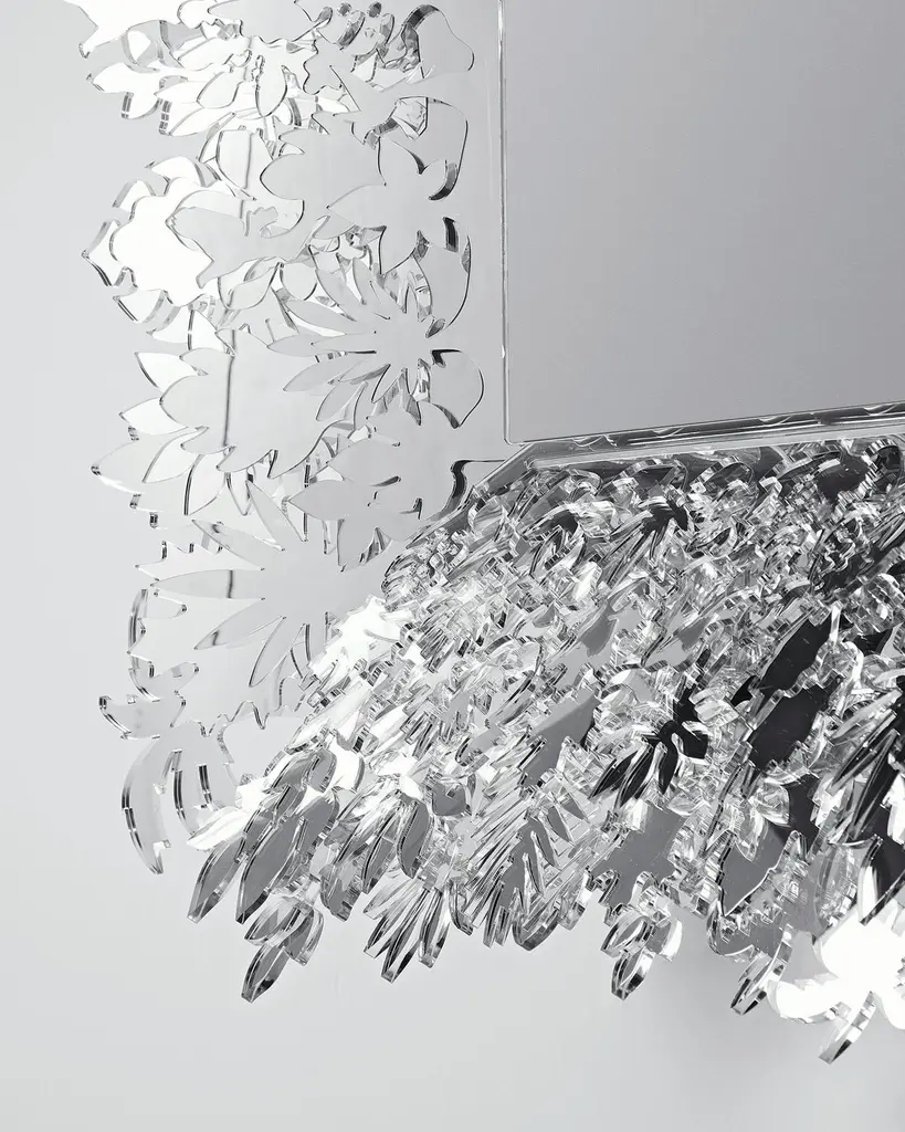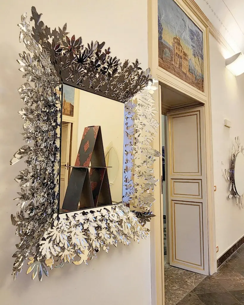 “Ecstatic World” is a contemporary, Neo-Baroque sculptural wall mirror, meticulously handcrafted to reflect light and transform any space. This three-dimensional design object combines sculptural form with a reflective, immersive experience, creating a visual landscape that engages viewers. Every surface is treated with a deposition technique borrowed from the semiconductor industry, allowing it to reflect like a mirror, and is completed through meticulous handcrafted finishing that enhances its luminous brilliance.In dialogue with light and space, this work transforms beyond its function as a mirror. When installed on a wall, layers of reflections and shadows overlap to create the impression of a second garden—an ephemeral landscape that shifts with the viewer’s gaze. Within this fleeting shimmer, the viewer encounters both the work and their own reflection. Reinterpreting the Garden of Eden through a contemporary lens, Ecstatic World restores the wonder of nature in a refined, sculptural language.Presented alongside Glam Baroque, Medusa, and L’Origine du Monde, Ecstatic World was the only work by an international artist officially invited to the Baroque & Neo-Baroque Design Festival in Sicily, Italy. A fusion of visual experimentation and structural precision, this piece has been recognized on the international stage as a distinctive and rare collectible design object.Made-to-Order NoticeAll pieces by VIATOV are fully handcrafted, using plexiglass that is individually cut, colored, and assembled by hand. As each item is custom-made, we do not keep stock. Production begins once an order is placed, so cancellations or returns are not accepted after production starts.You may cancel your order within 48 hours of placing it if you change your mind.If an item arrives damaged, we are happy to arrange an exchange.Under the EU Consumer Rights Directive, made-to-order items fall under the exception for customized goods, so the standard 14-day withdrawal right does not apply. Only defective or damaged goods are eligible for return or refund.