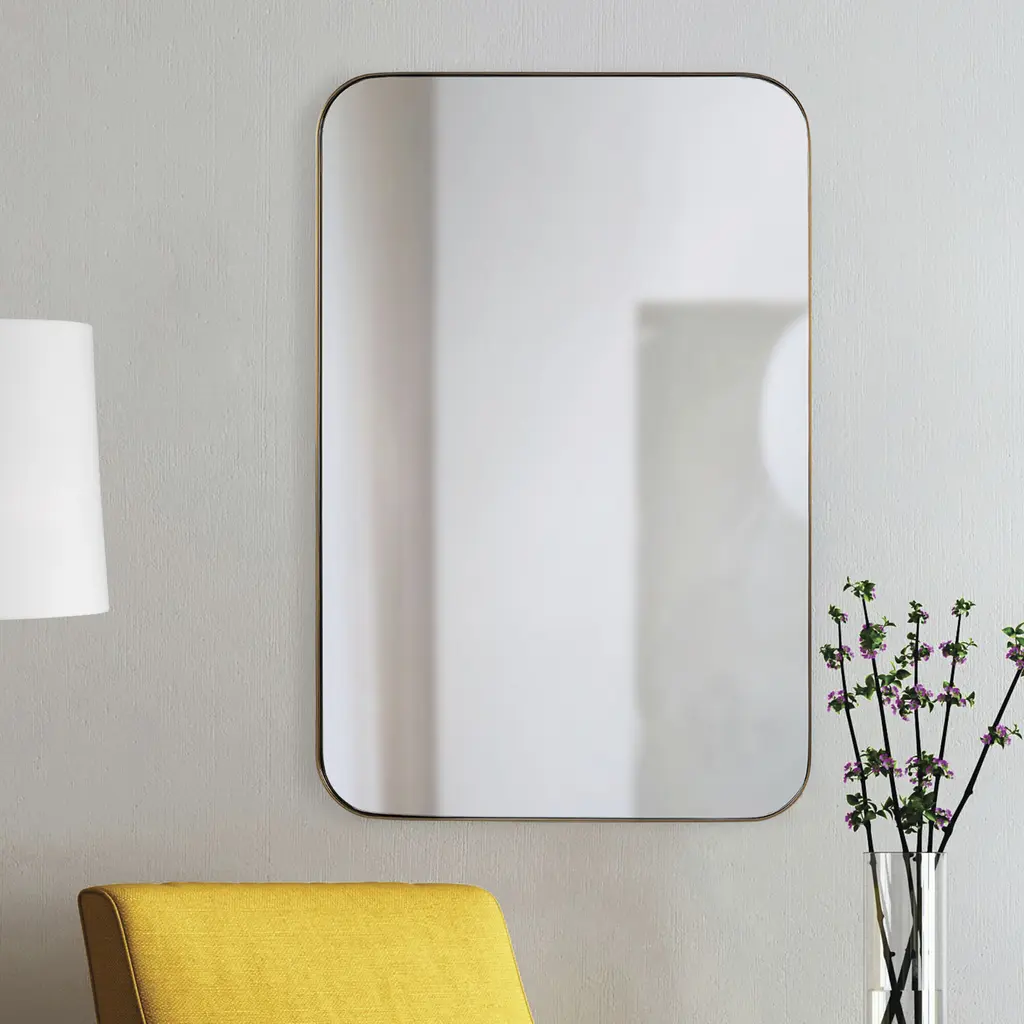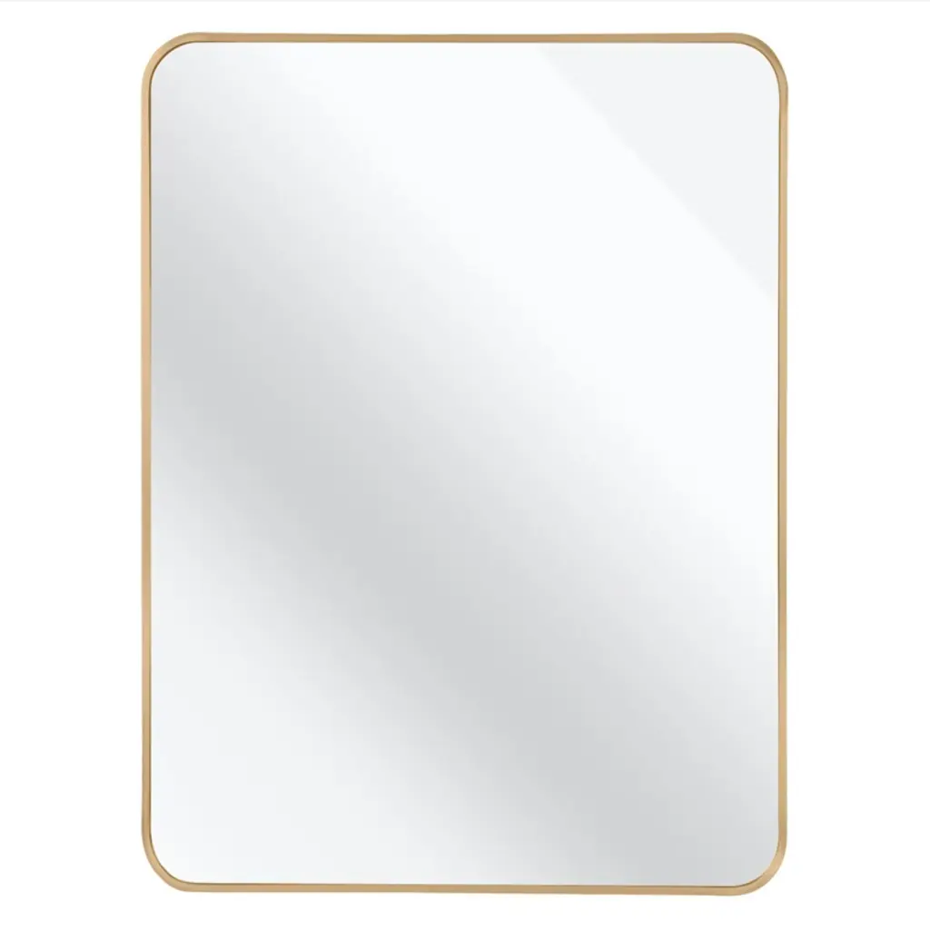 Style meets classic appeal in this mirror design. The rounded edges of its rectangular structure pair perfectly with the bronze-plated metal frame to bring an inviting and polished appeal to the home. This mirror makes an impact without being overpowering.