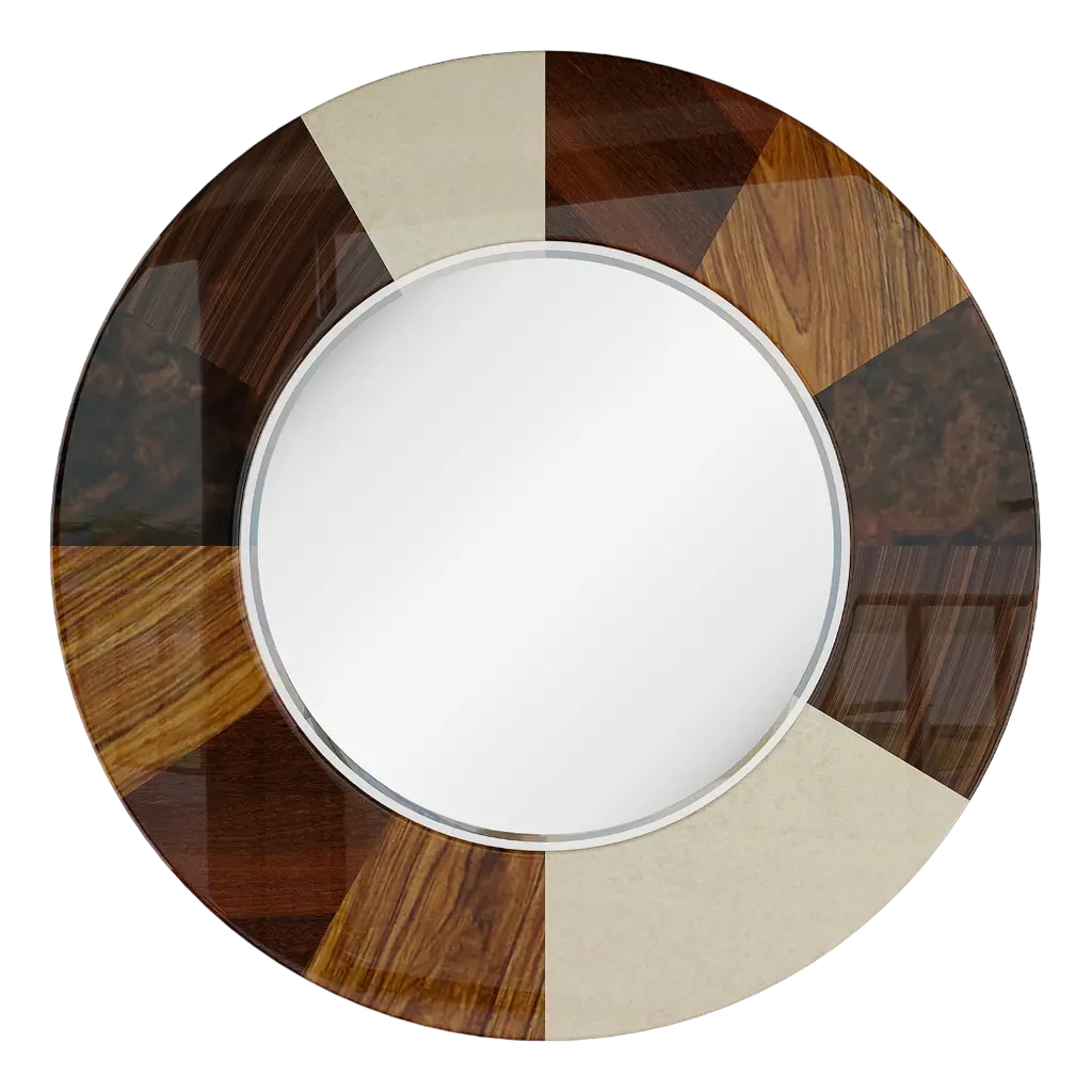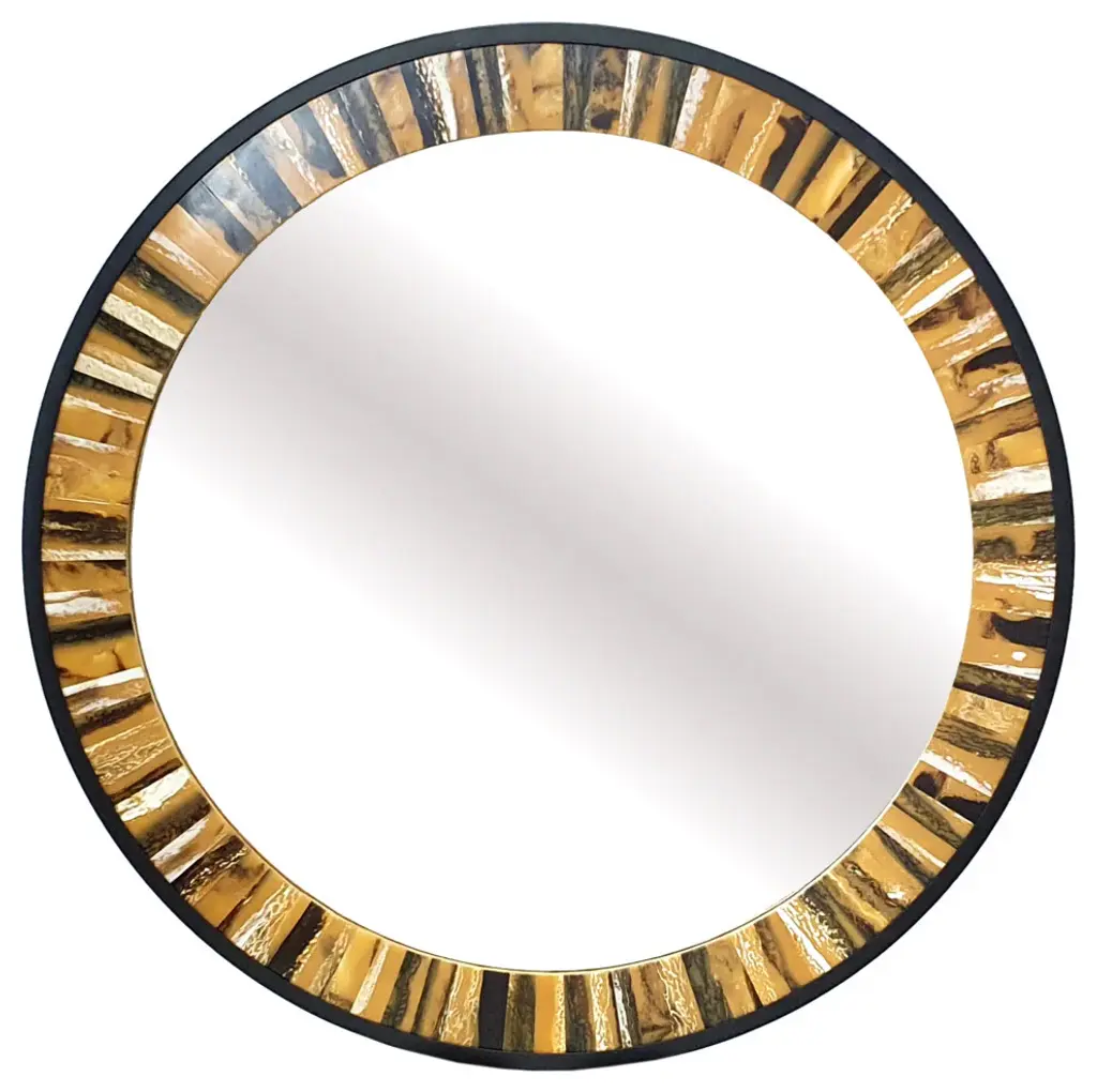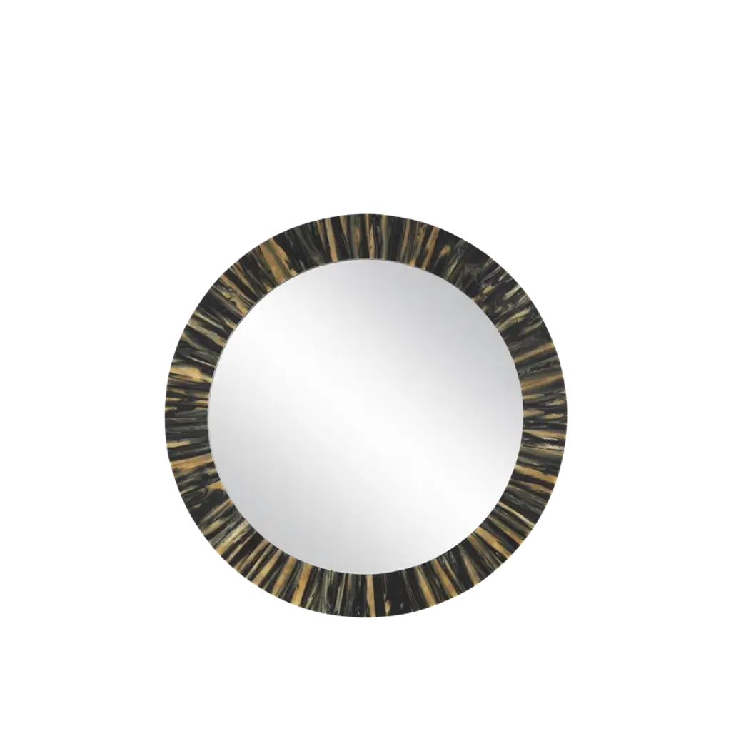 This round eglomisè wall mirror is decorated with an animalier print motif.