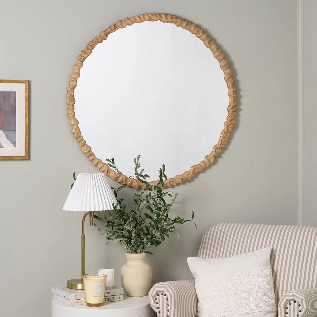 Eilat Round Wood Wall Mirror, Natural