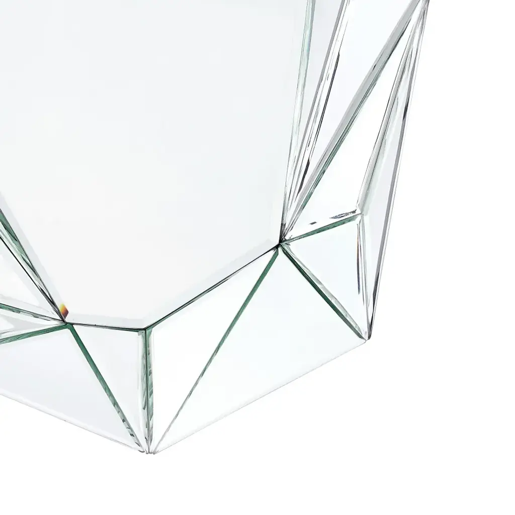 Shining in all its splendor, the Elaine Mirror is a geometric gem—the perfect pick for a room in need of some opulent glitz. An array of mirrored pieces have been cut, hand-beveled, and applied on wood to embody the dazzling facets of a diamond. Irregular angles give the center display a unique, organic shape. Its three-dimensional form, bordered by antique-finished brass ensures that the Elaine always stands out, bursting from a wall like a precious stone on a piece of jewelry. It's hard not to feel glamorous when gazing at your reflection in the Elaine.