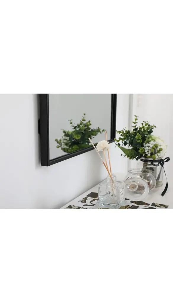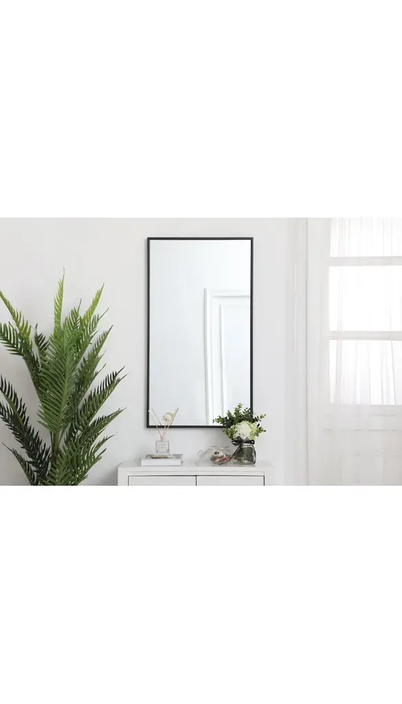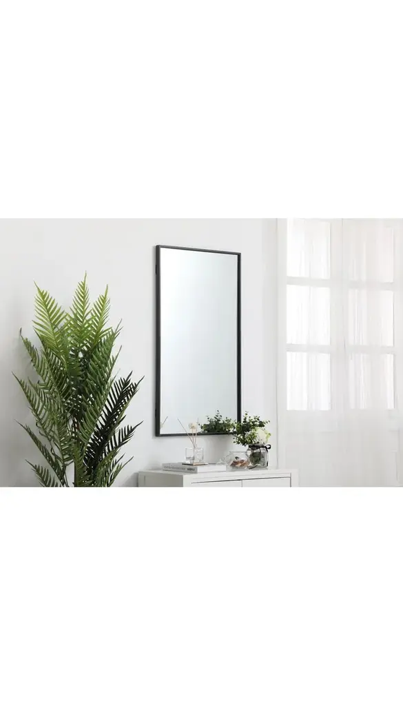 Elegant Decor MR42036BK Metal frame rectangle mirror 20" Black. Style: Contemporary. Collection: Monet. Finish: Black. Fixture Material: metal, glass, wood. Dimenison(in): 20(L)x1(W)x36(H)x1(Depth). Canopy: Yes. Mirror Fame Shape: rectangle. Mirror Dimension (in): 19.25(W)x0.16(Depth)x35.25(H). Mirror Hanging Orientation: Vertical and Horizontal. Mirror Type: Clear mirror. Mirror have Beveled glass: no. California Proposition 65 Warning Required: Yes. Prop 65 Chemical Name: Cadmium. Product Shape: rectangle. Assembly Required: No. Product Warranty: 1 year limited.