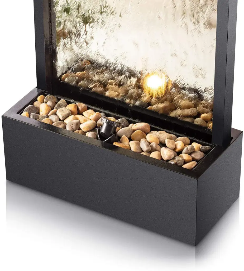 Elegant Fountain, Tall Waterfall Design With Mirror And Integrated Spotlight