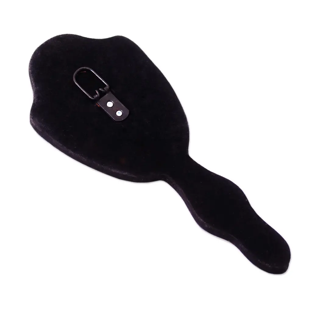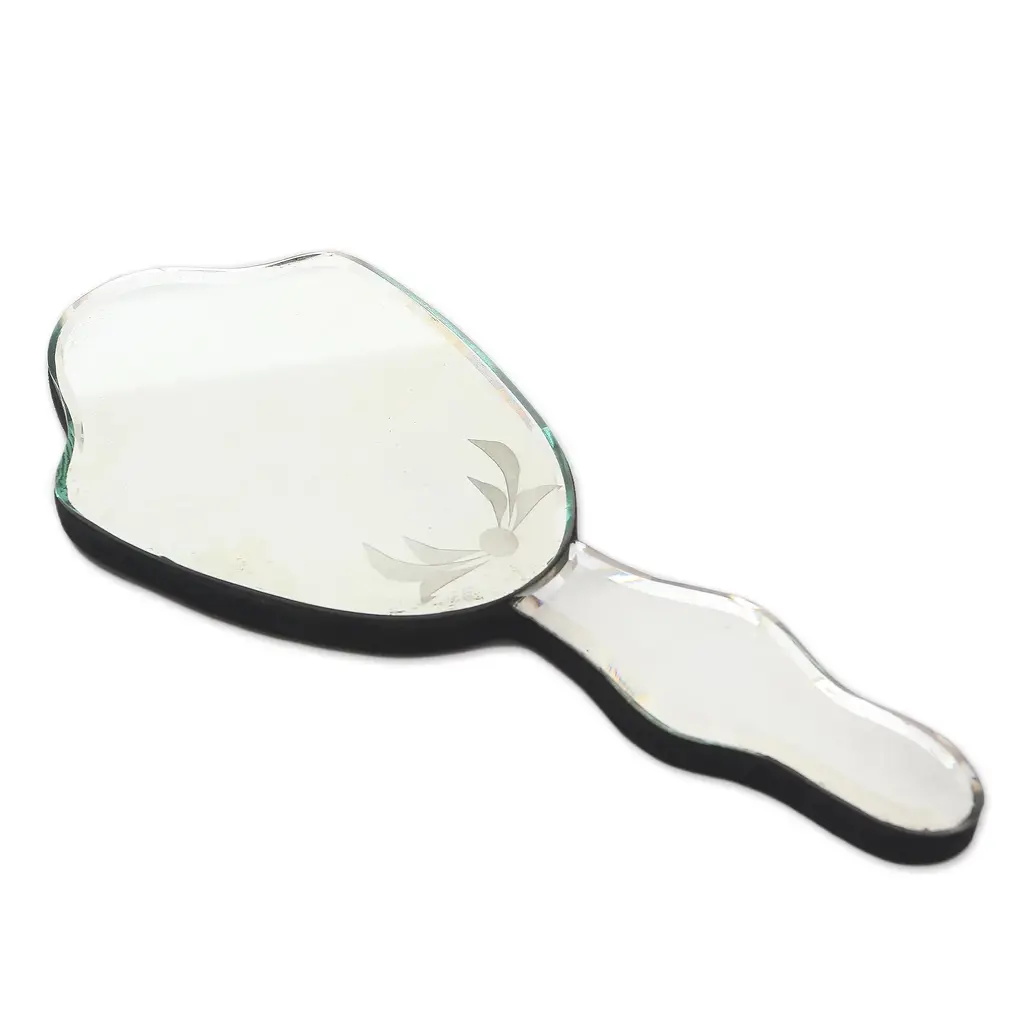 Whether you use it as a hand mirror or to adorn your wall, this elegant accent will elevate any space. Sapto Daryono designs the mirror, which features beveled edges and an etched motif. The mirror has a loop on the velvet-covered back for displaying on a wall if desired.