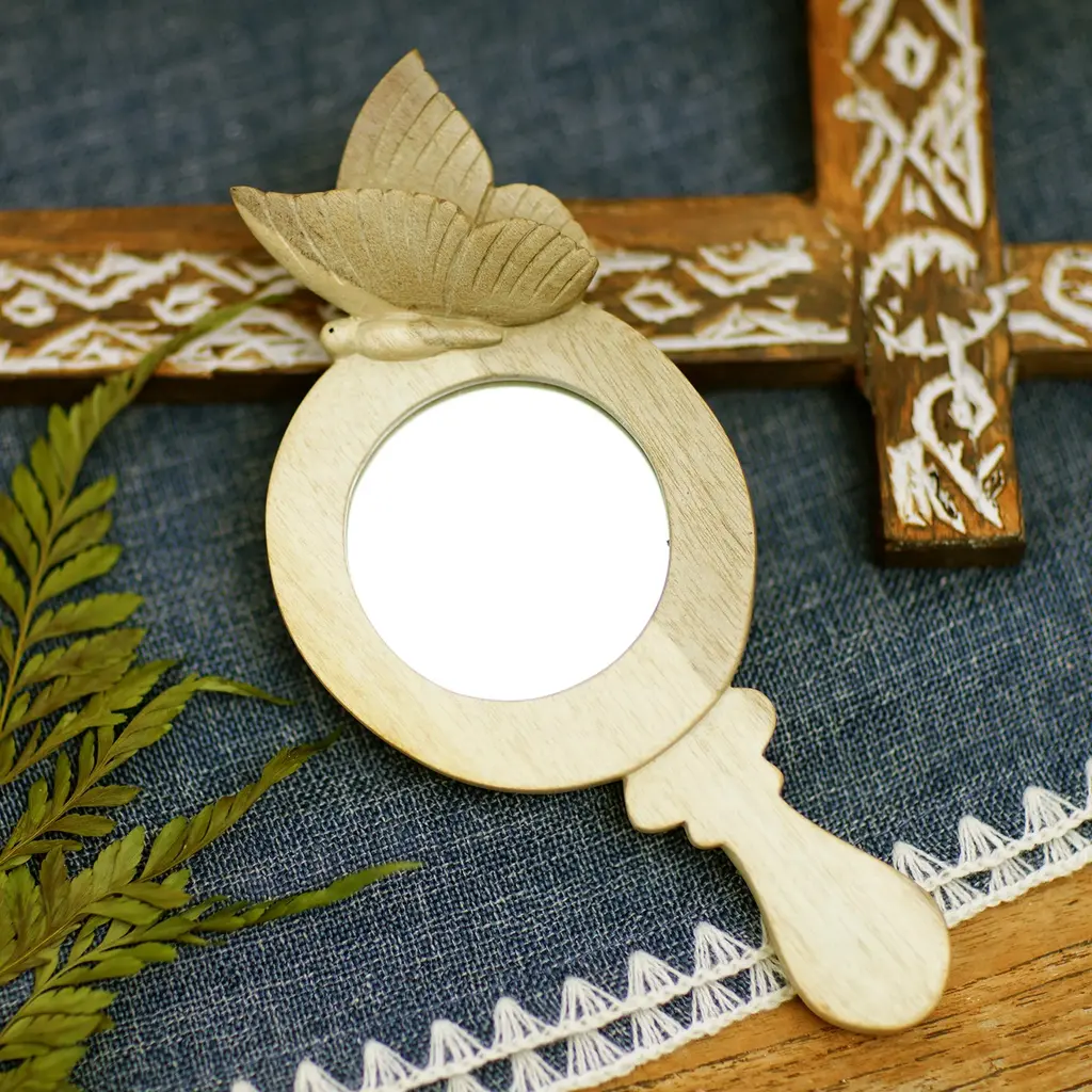 Elegant Hand Mirror Wall Decor Accent- Lucid Lotus