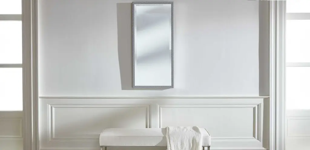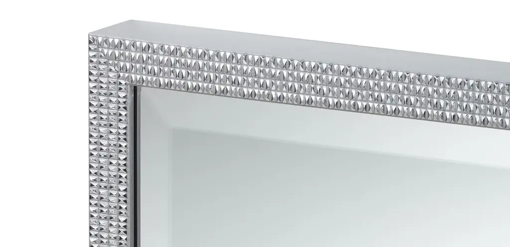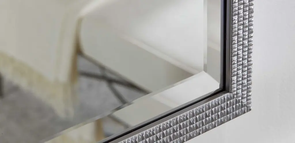 Behold, a shining star in the making: our Elena rectangular hanging mirror. The solid wood frame, crafted in Italy, features intricate geometric details. A stunner in any room.
