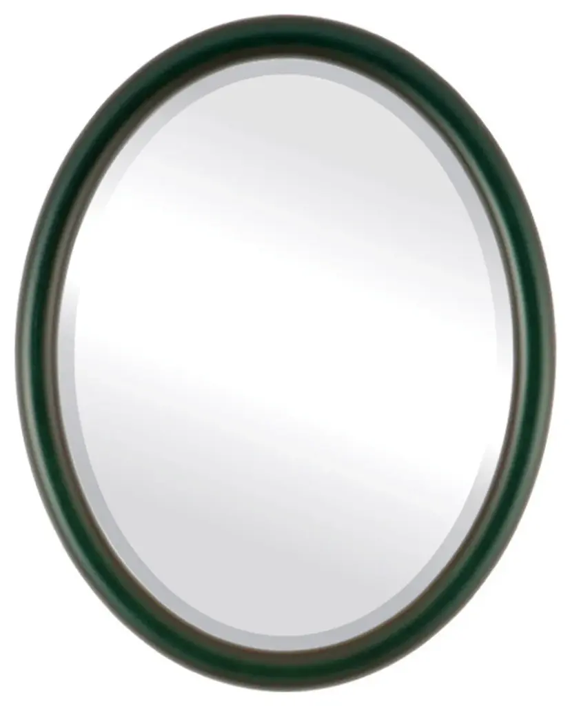 Our Ellipse Mirror is the epitome of sleek, Contemporary style. Its simple oval shape is finished in our custom glossy green lacquer. The Ellipse Mirror is a perfect accent piece for an entryway, bathroom, bedroom or any room in your home. D-rings are affixed to the back of the mirror so it is ready to hang right out of the box in either a horizontal or vertical orientation! The mirrored glass on this piece is beveled adding to its beauty and style. The Ellipse Mirror is part of our custom paint program and is available in one of fourteen vivid colors. It is proudly painted in the USA.