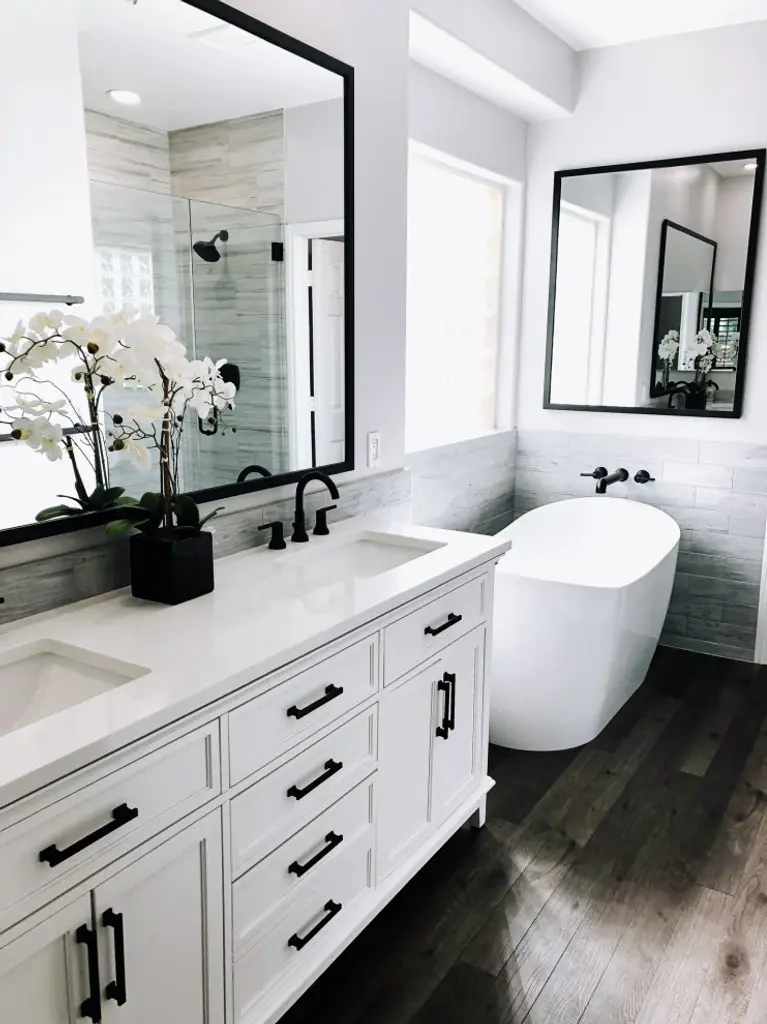 The thinnest framed mirror we have. At 1 1/4" wide and 3/4" thick, the Ellis collection is perfect for those smaller mirrors or where a minimalistic approach comes in to play. In a white, black, espresso textured, satin nickel, silver, gold, or brushed chrome finish, there is an option for everyone in the Ellis Framed Mirror collection.Hangrail for installation will be applied on the width of the frame. All assembly hardware and instructions will be included. Additional hangrails are included if the opposite orientation is desired for installation. The dimensions displayed are the final outside dimensions of the frame, including the mirror. CATII safety backing applied on all mirrors. Approved for high-moisture areas such as bathrooms.