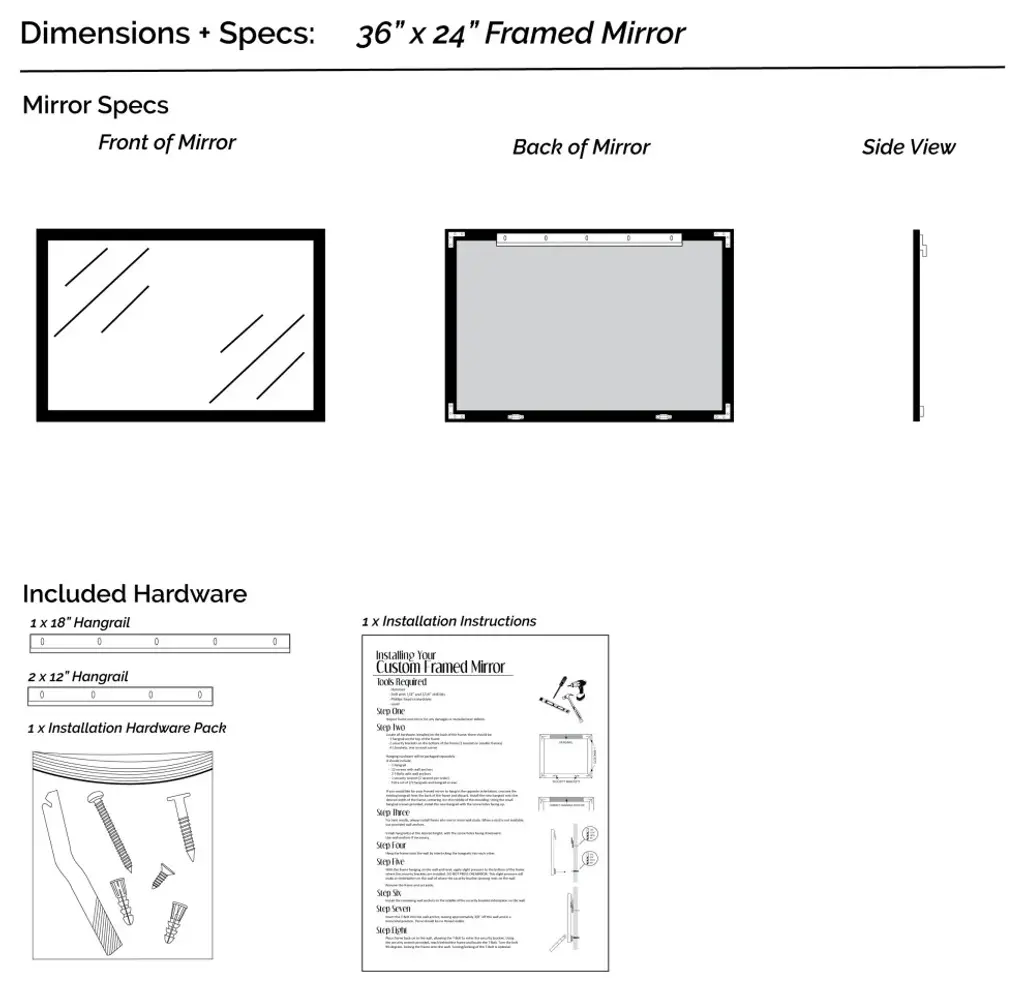 The thinnest framed mirror we have. At 1 1/4" wide and 3/4" thick, the Ellis collection is perfect for those smaller mirrors or where a minimalistic approach comes in to play. In a white, black, espresso textured, satin nickel, silver, gold, or brushed chrome finish, there is an option for everyone in the Ellis Framed Mirror collection.Hangrail for installation will be applied on the width of the frame. All assembly hardware and instructions will be included. Additional hangrails are included if the opposite orientation is desired for installation. The dimensions displayed are the final outside dimensions of the frame, including the mirror. CATII safety backing applied on all mirrors. Approved for high-moisture areas such as bathrooms.
