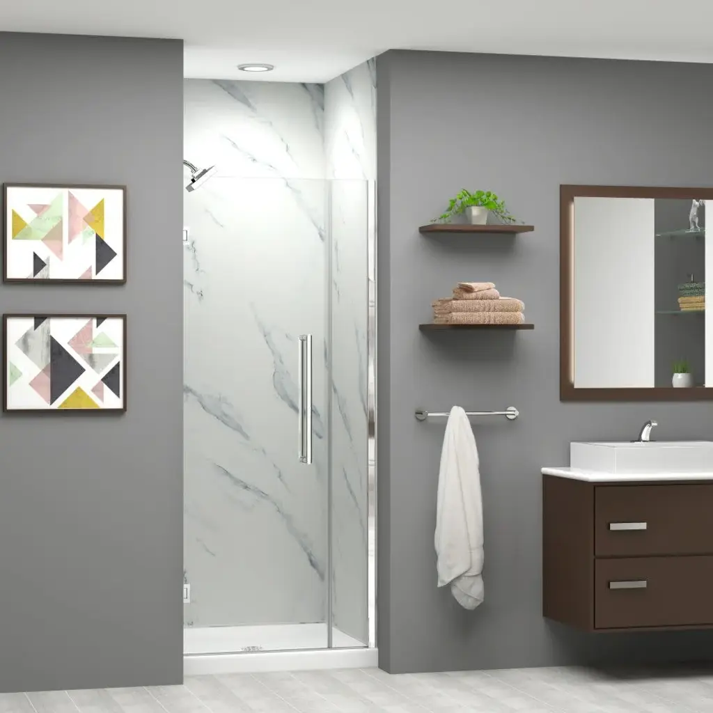 The thinnest framed mirror we have. At 1 1/4" wide and 3/4" thick, the Ellis collection is perfect for those smaller mirrors or where a minimalistic approach comes in to play. In a white, black, espresso textured, satin nickel, silver, gold, or brushed chrome finish, there is an option for everyone in the Ellis Framed Mirror collection.Hangrail for installation will be applied on the width of the frame. All assembly hardware and instructions will be included. Additional hangrails are included if the opposite orientation is desired for installation. The dimensions displayed are the final outside dimensions of the frame, including the mirror. CATII safety backing applied on all mirrors. Approved for high-moisture areas such as bathrooms.