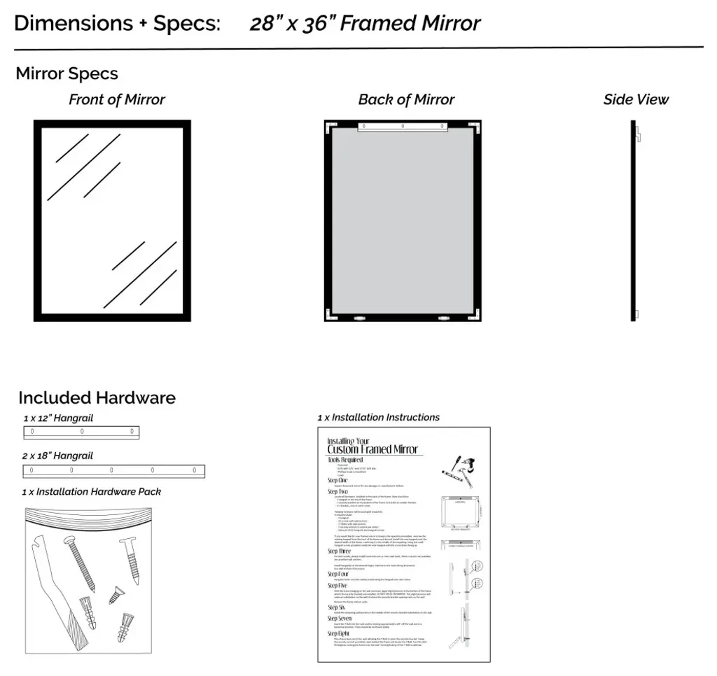 The thinnest framed mirror we have. At 1 1/4" wide and 3/4" thick, the Ellis collection is perfect for those smaller mirrors or where a minimalistic approach comes in to play. In a white, black, espresso textured, satin nickel, silver, gold, or brushed chrome finish, there is an option for everyone in the Ellis Framed Mirror collection.Hangrail for installation will be applied on the width of the frame. All assembly hardware and instructions will be included. Additional hangrails are included if the opposite orientation is desired for installation. The dimensions displayed are the final outside dimensions of the frame, including the mirror. CATII safety backing applied on all mirrors. Approved for high-moisture areas such as bathrooms.