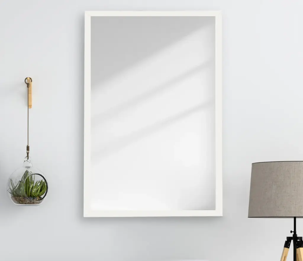 The thinnest framed mirror we have. At 1 1/4" wide and 3/4" thick, the Ellis collection is perfect for those smaller mirrors or where a minimalistic approach comes in to play. In a white, black, espresso textured, satin nickel, silver, gold, or brushed chrome finish, there is an option for everyone in the Ellis Framed Mirror collection.Hangrail for installation will be applied on the width of the frame. All assembly hardware and instructions will be included. Additional hangrails are included if the opposite orientation is desired for installation. The dimensions displayed are the final outside dimensions of the frame, including the mirror. CATII safety backing applied on all mirrors. Approved for high-moisture areas such as bathrooms.
