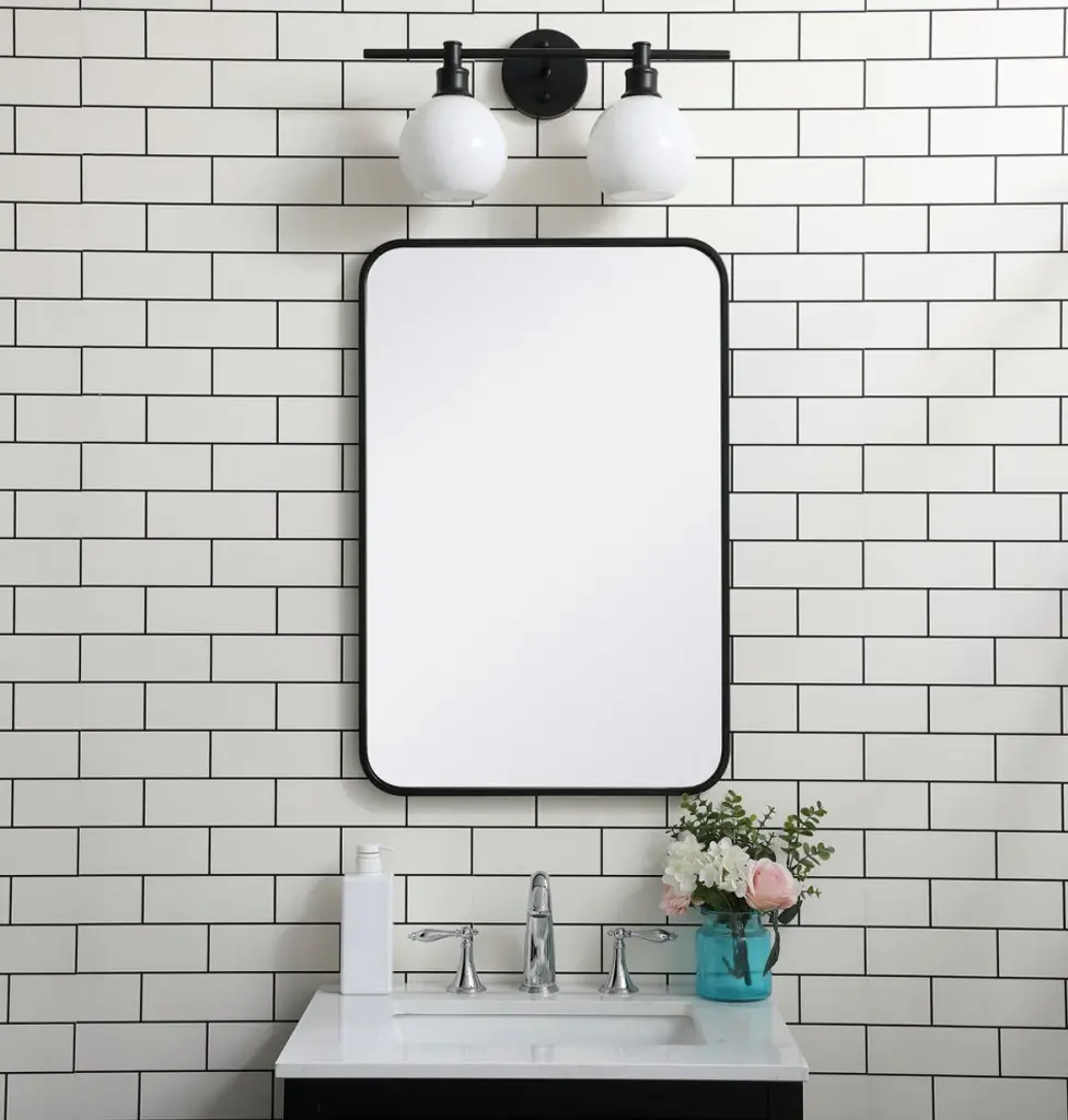 Ellis Soft Corner Metal Rectangular Mirror, Black, 20"x30"