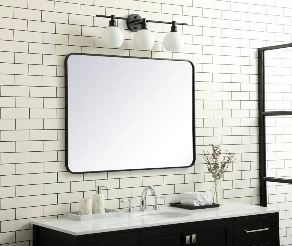 Ellis Soft Corner Metal Rectangular Mirror, Black, 30"x40"