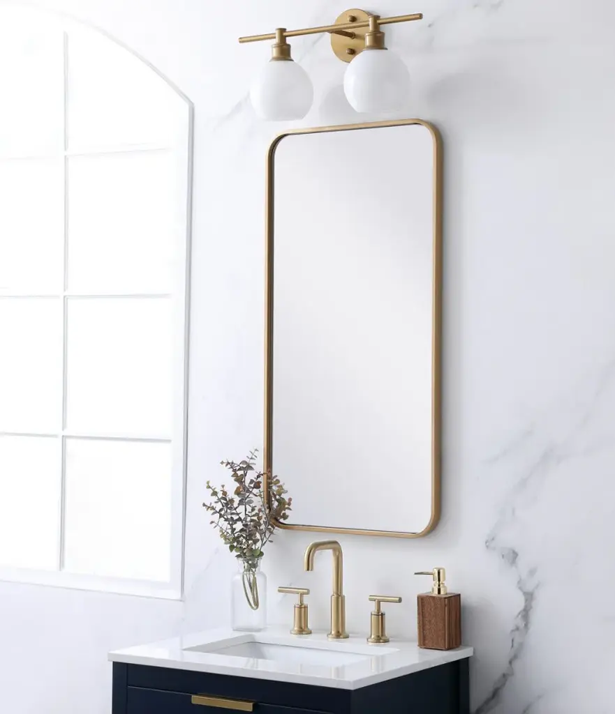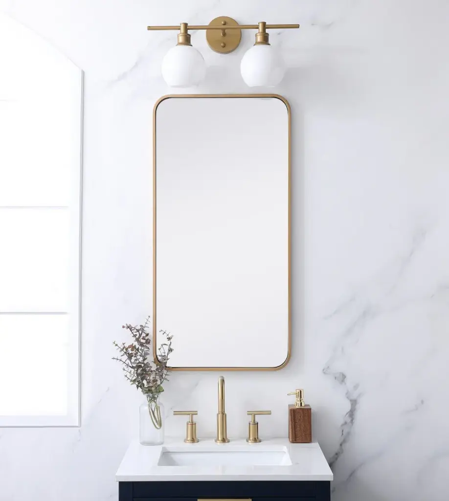 Ellis Soft Corner Metal Rectangular Mirror, Brass, 18"x36"
