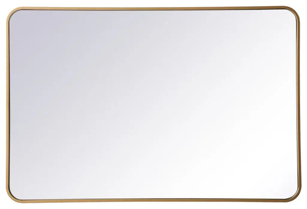 Ellis Soft Corner Metal Rectangular Mirror, Brass, 24"x40"