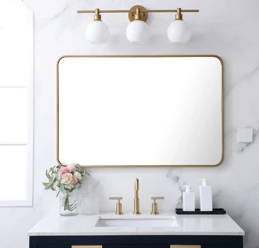 Ellis Soft Corner Metal Rectangular Mirror, Brass, 27"x40"
