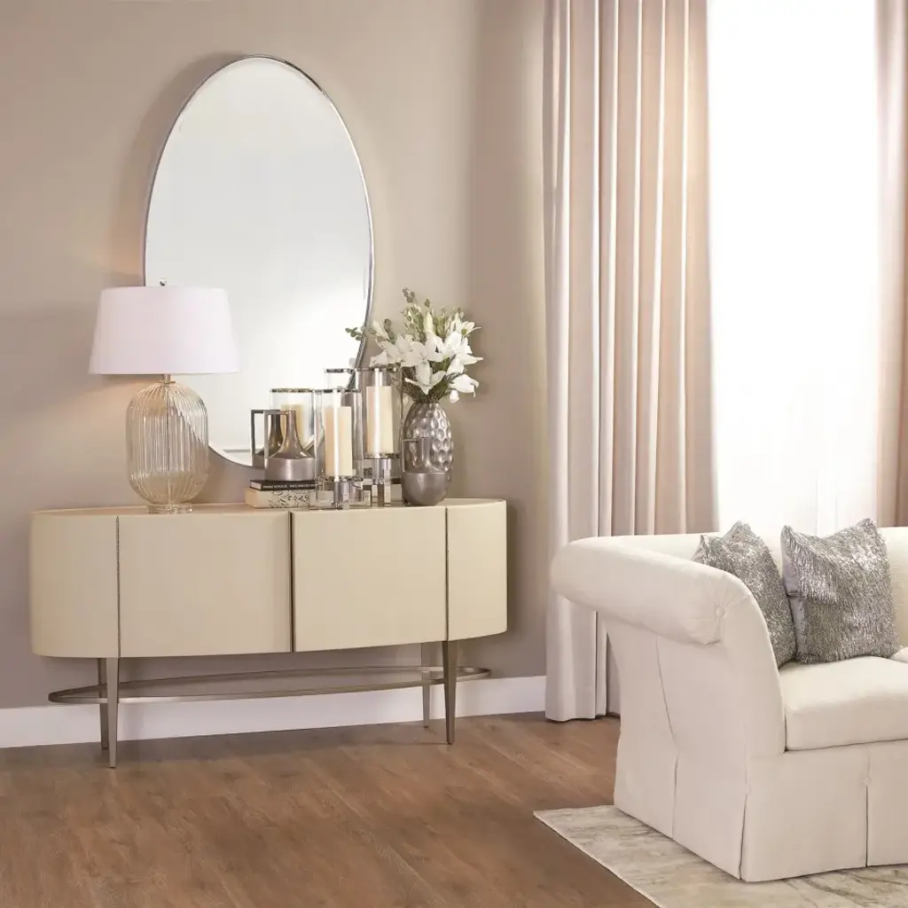 Substantial in size, the Elongated Oval Mirror has a beveled mirror and steel frame with nickel-plating in the perfect elliptical shape. From a fashion forward perspective, Global Views offers accessories, furniture, statement lighting, and an assortment of rugs and mirrors to add beauty and joy to your home.
