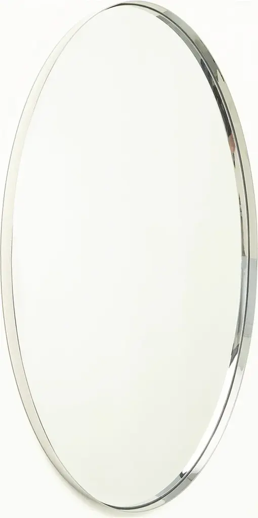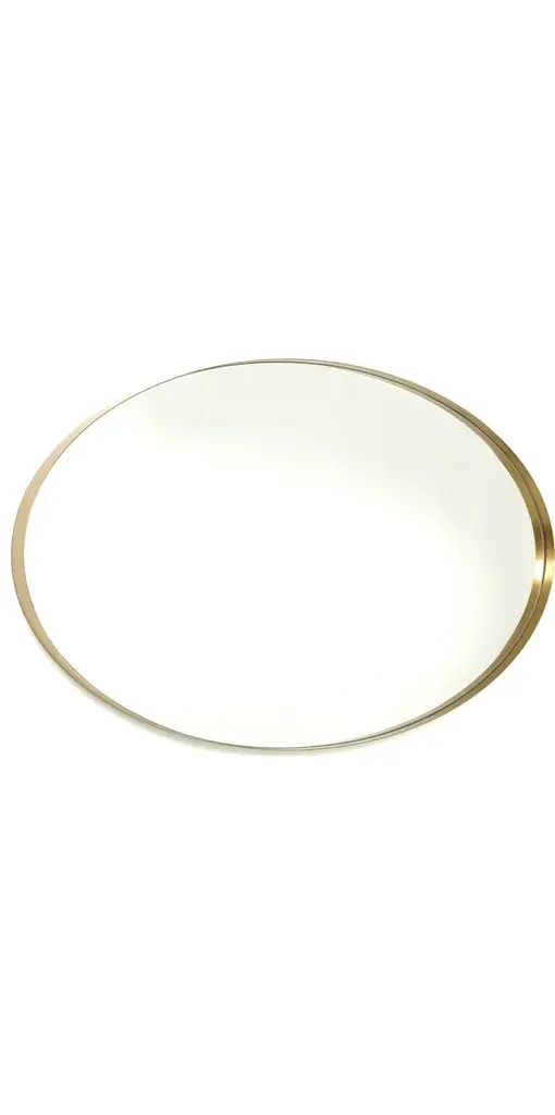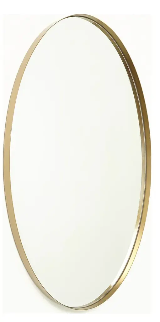 Substantial in size, The Elongated Oval Mirror has a beveled mirror and steel frame with brass plating in the perfect elliptical shape.