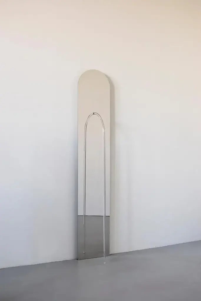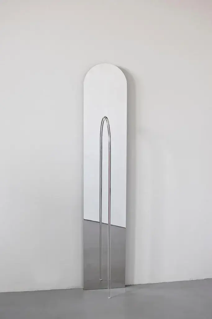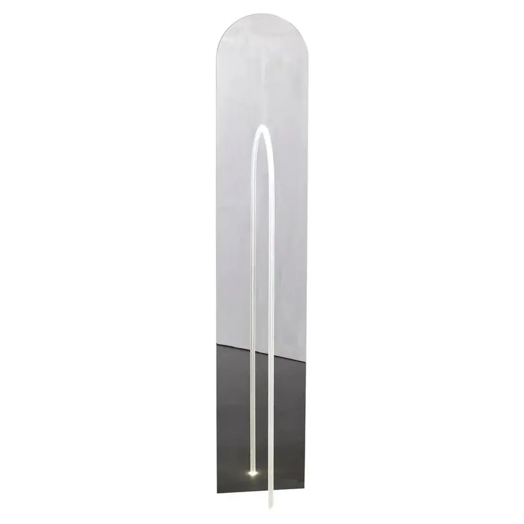 Original enlightened mirror - Maximilian Michaelis Title: The elusive nature of perception, No. 05 Measures: ca. 36 x 190 x 26 cm. Material: polished stainless steel, Belgian bluestone, acrylic glass, Led The basis and inspiration for Maximilian Michaelis' work are his feelings, feelings for himself and his surroundings as well as for the society in which we are living. He is constantly observing and reflecting. The analysis of mankind, its systems, thoughts, feelings, the ambiguity of the human being always contribute to his artwork. He wants to transfer a thought or a feeling into his artwork, he is not only creating an object, he rather imbues a piece of art with an intangible quality. The drawings, sculptures and objects he creates evolve from a very concentrated and often repetitive process. An almost meditative act, a sequence which is as much part of the work itself as the feelings and ideas that leave their mark on his pieces. He develops his thoughts into an object or allow them to melt into it. Maximilian works with hundreds of wires until something comes into existence, until something emerges from a concentrated flow. He is always searching for an organic vibrancy in his work, for an aura that is subtle but still present, more to be felt than to be seen. This piece is attributed to the mentioned designer/maker. It has no attribution mark and no official proof of authenticity, however it is well documented in design history. I take full responsibility for any authenticity issues arising from misattribution