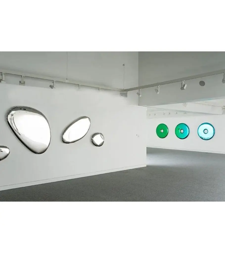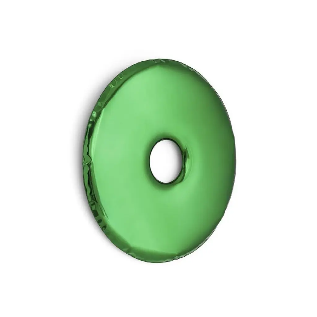 Emerald Rondo 75 wall mirror by ZietaDimensions: Diameter 75 x D 6 cm Material: Stainless steel.Finish: Emerald.Available finishes: Stainless Steel, White Matt, Sapphire/Emerald, Sapphire, Emerald, Deep space blue, Dark matter, or red Rubin. Also available in sizes ø95, ø120, and ø150cm. The Rondo Mirror is made of stainless steel polished to a high gloss. Its polished surface is perfectly reflecting the light and other objects placed in the same room or hall. Largescale convexities that appear on the surface of the mirror are literally able to alter the space. It is like making an individualized interior design of the moment when by rolling the mirror from one place to another everybody can create or rediscover a well-known environment to a brand new and grasping concept. Depending on Rondo´s arrangement, either by hanging it or leaning at the wall, the mirror can change the perception of the surroundings.Deep, dark, blue, and intriguing. The new unique finish of Rondo Deep Space Blue takes the spectators for an unexpected journey into an undiscovered world of reflections. The mirror resembles cosmic wonders and at the same time can be fitted with the most demanding and elegant interiors. Color gives meaning and brings associations. The Gradient collection presents the whole spectrum of shades of cool sea depth. Carefully selected colors blend well with the hard steel.About Zieta: Zietas main goal is to deliver uniqueness and customization in design and construction while keeping the production, transport, and warehousing innovatively efficient.This is how they imagine the future world: Light, durable structures of customized applications produced on demand out of one-of-a-kind parts, yet efficiently.They use a computer-controlled production process. Customized pattern, customized form, customized function, one-of-a-kind product, and outstanding precision are what they deliver.You will find all of this philosophy reflected in the products. They research, they discover new possibilities, they play with forms and they deliver a beautiful, innovative, surprising outcome to people who love the design and who care about design development.They believe their work is a valuable contribution to the world of design not only by the unique beauty of the forms but most of all by opening ultra-innovative opportunities of forming and new paths for the world of the future.