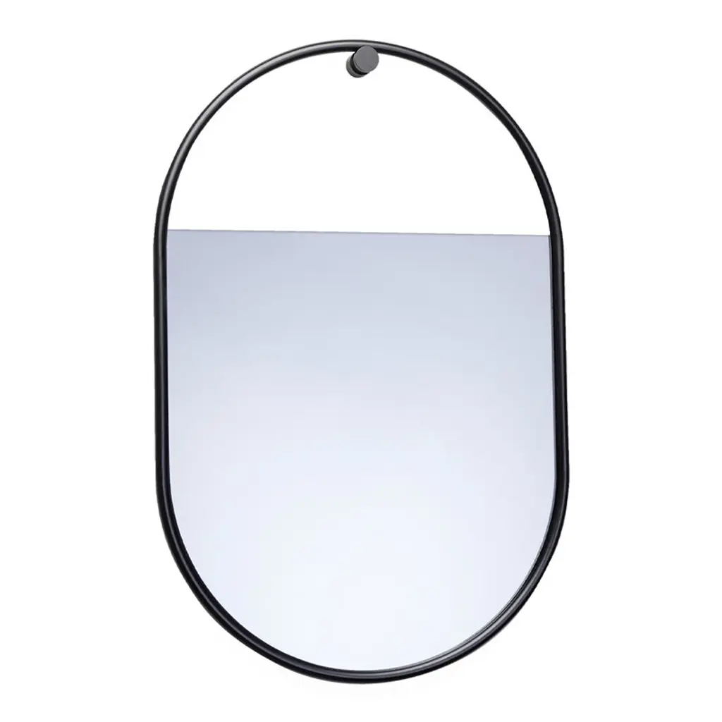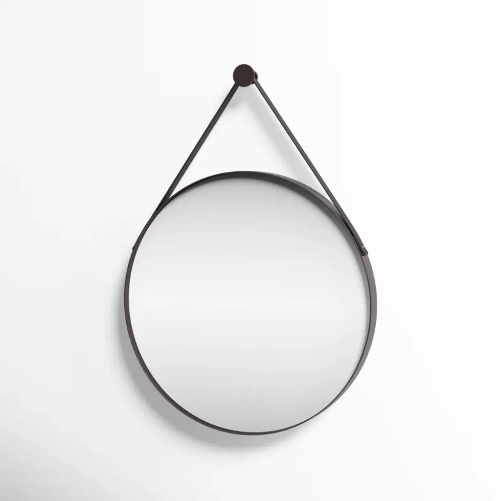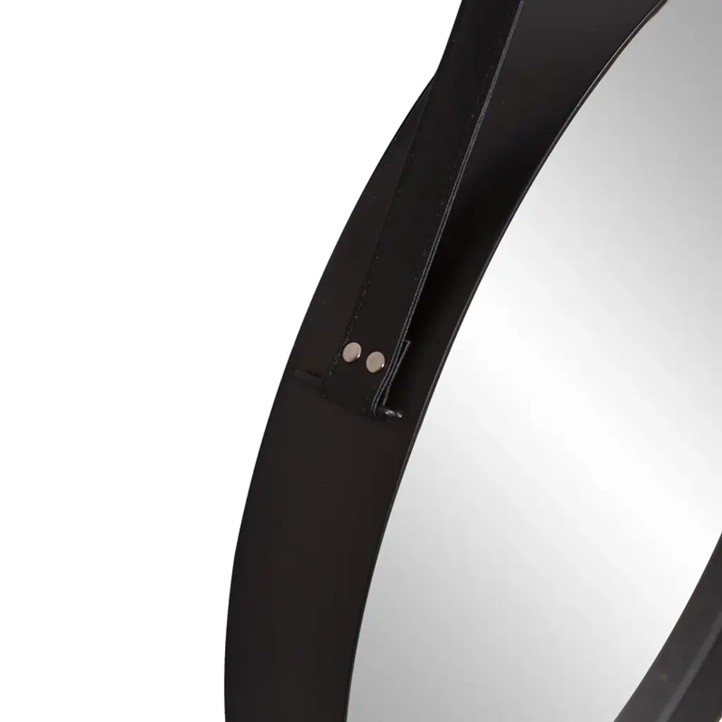 British explorers for years have inspired everything from furniture to accessories. Their adventures often referred to as campaigns has created a design sensation. A mirror was often part of these travels and featured a leather strap that could be used to hang it from the tent or a tree. Hence the inspiration for our Huntley Mirror. A round stainless steel frame finished in brushed black features a leather strap. A matching round hanging knob affixes to the wall.