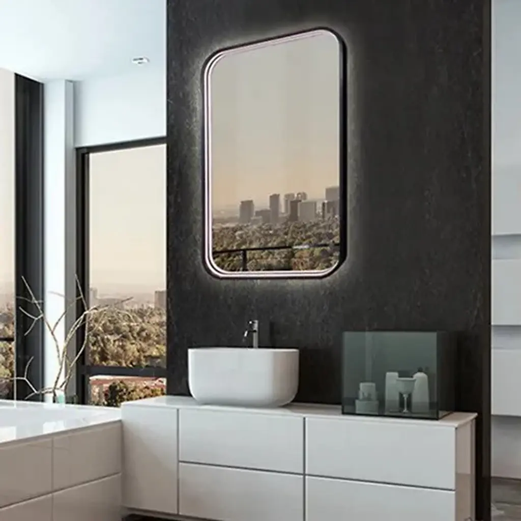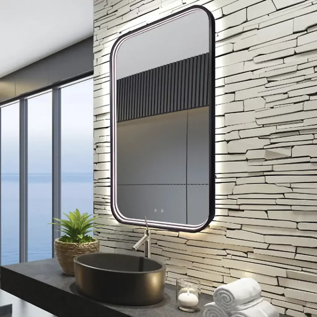 Electric Mirror's Eminence LED Lighted Mirror is a sleek and modern option, elevating any room it graces with its class and excellence. The shadow-box frame comes equipped with an integrated one-touch dimming system allowing you to control the inward-facing task light and ambient wall glow, providing the perfect amalgamation of form and function. Corrosion-resistant DuraMirror™ glass is suitable for damp bathroom environments, making the Eminence an energy efficient, environmentally sustainable option for any residence.