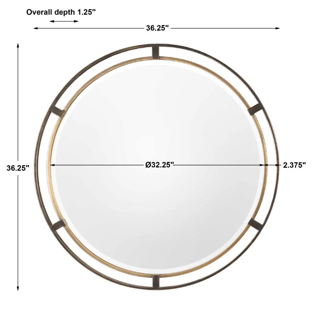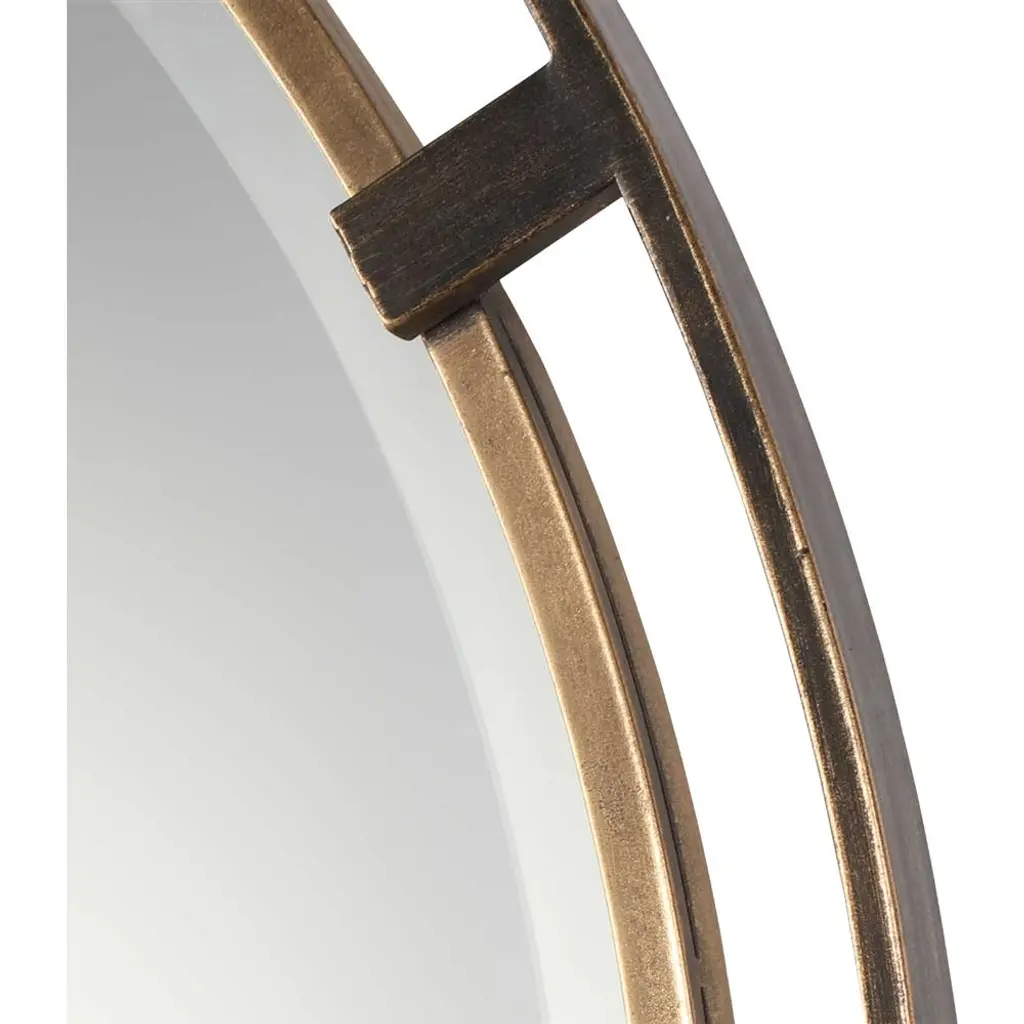 Emmanuel Modern Distressed Bronze Antique Gold Round Beveled Iron Wall Mirror