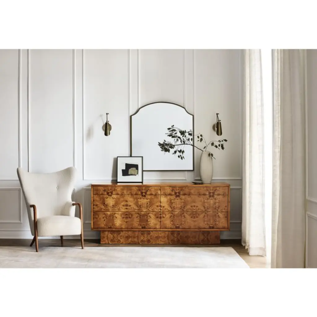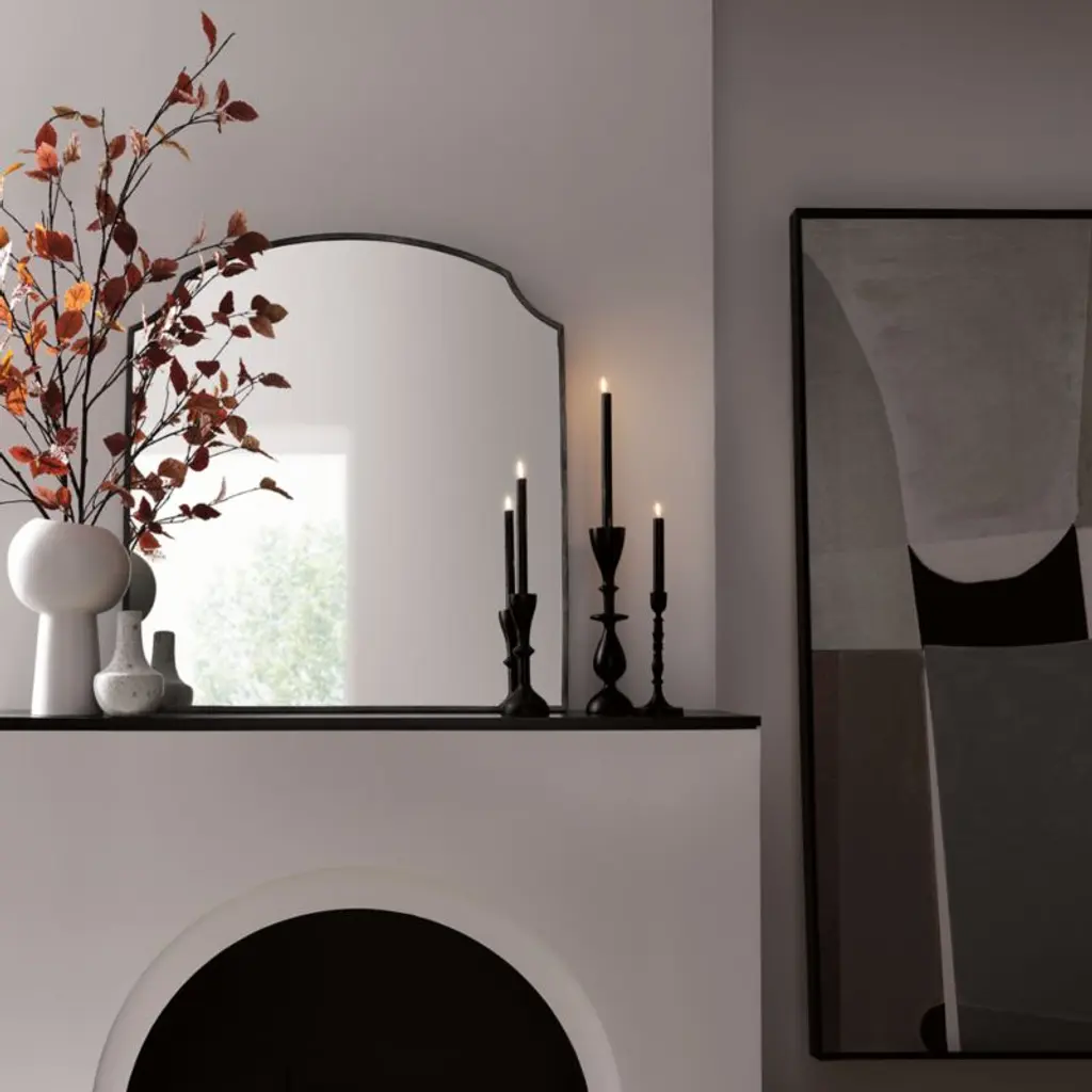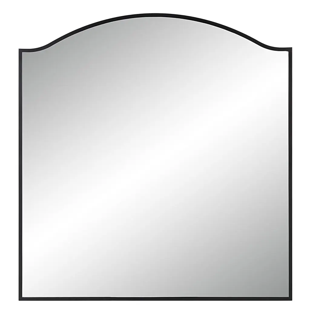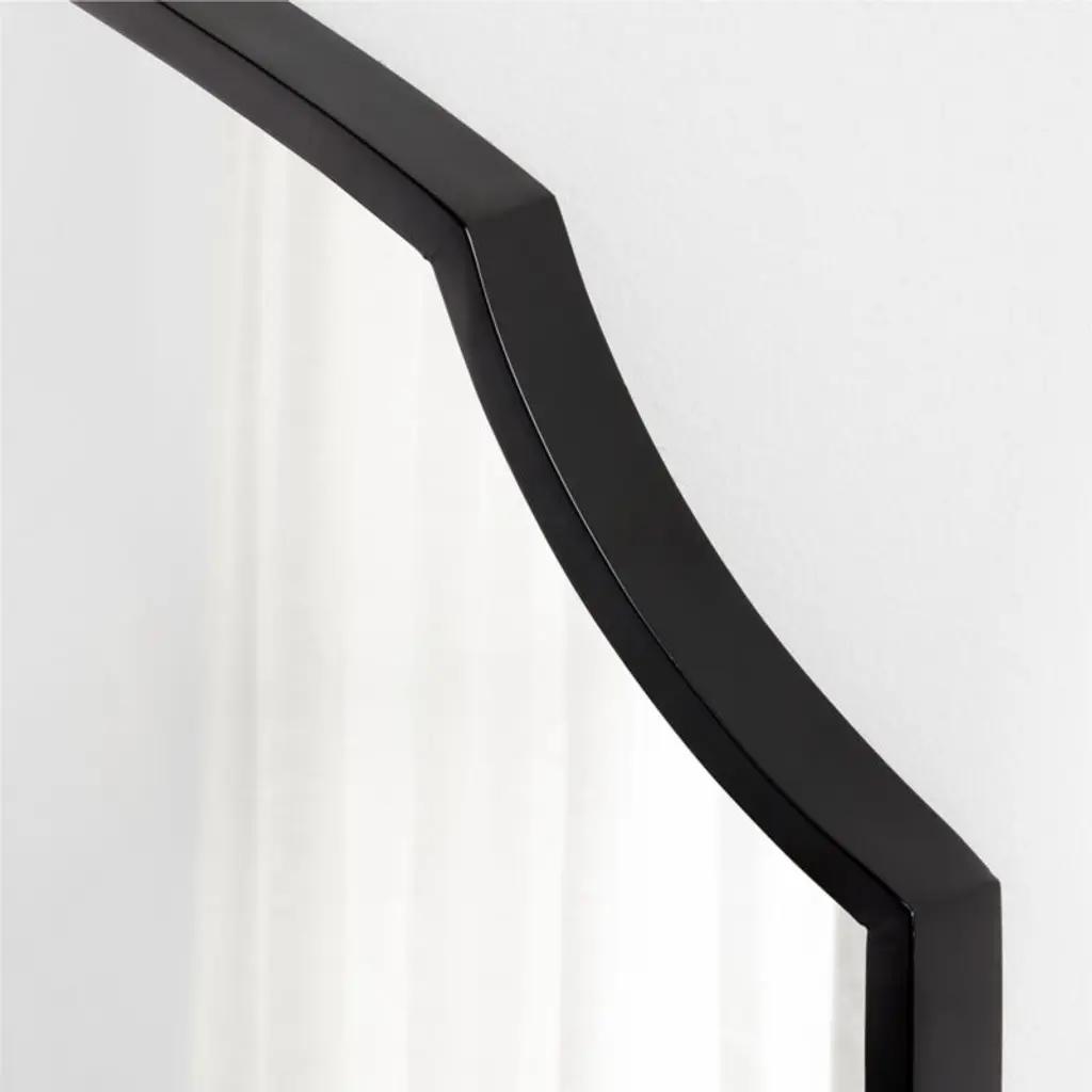 Straight from the Middle Ages to your modern home, our Emmy wall mirror reimagines the classic Tudor arch. Also called a four-centered arch, this elegant shape adds subtle architectural interest to the wall mirror's clean-lined frame of matte black-finished iron. A lovely way to add definition and provide light-reflecting brightness to an entryway or living room, the Emmy black wall mirror is a Crate & Barrel exclusive.