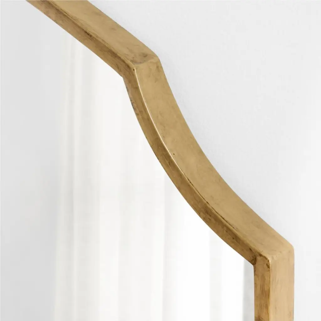 Straight from the Middle Ages to your modern home, our Emmy wall mirror reimagines the classic Tudor arch. Also called a four-centered arch, this elegant shape adds subtle architectural interest to the wall mirror's clean-lined frame of brass-finished iron. A lovely way to add definition and provide light-reflecting brightness to an entryway or living room, the Emmy brass wall mirror is a Crate & Barrel exclusive.