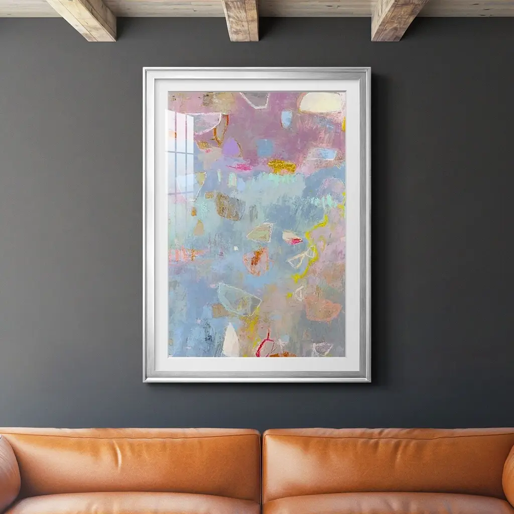 "Ephemeral" Beveled Mirror On Printed Abstarct Tempered Art Glass, 40x30"