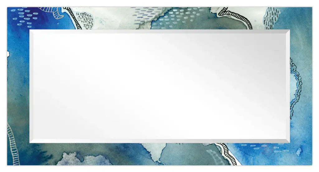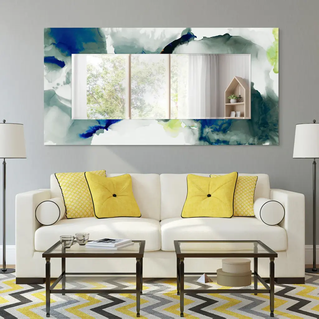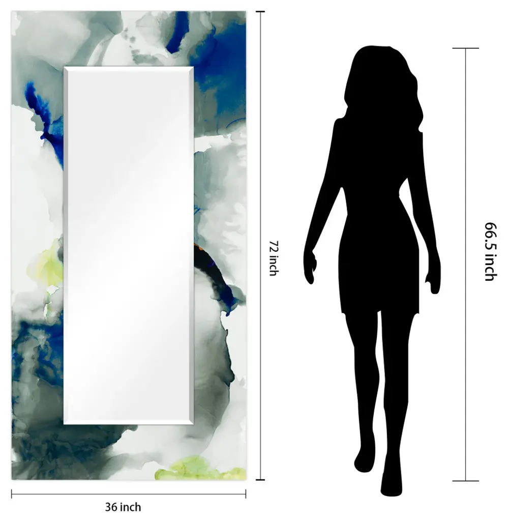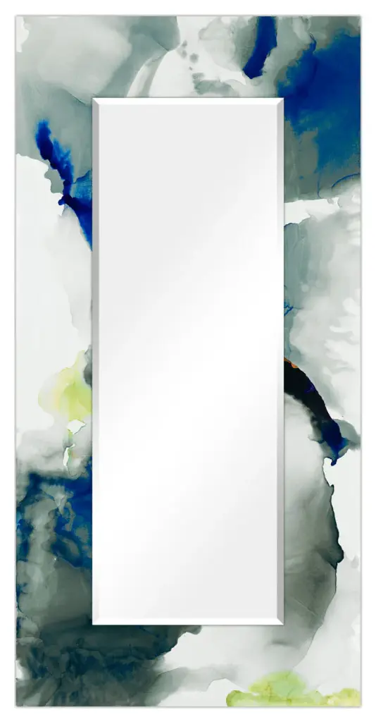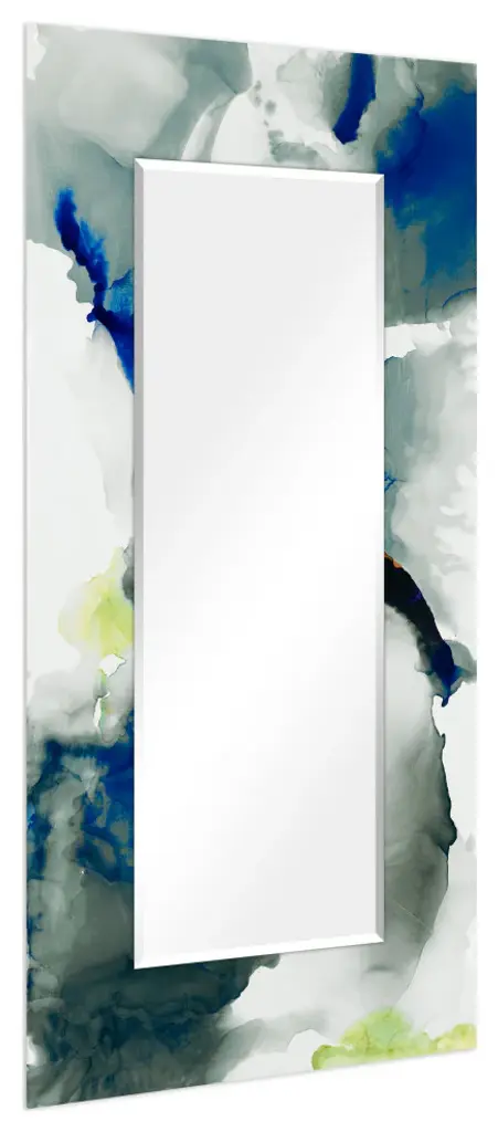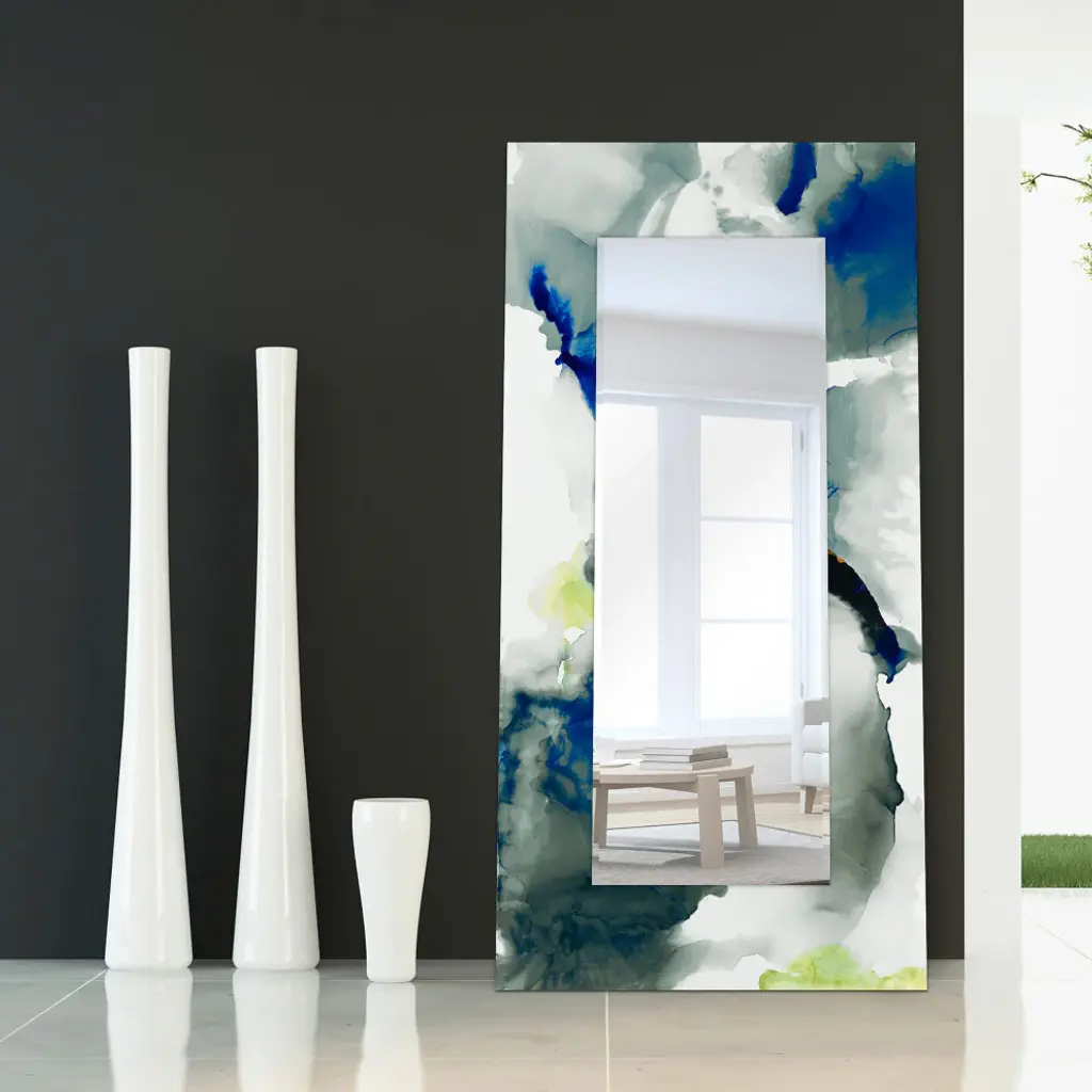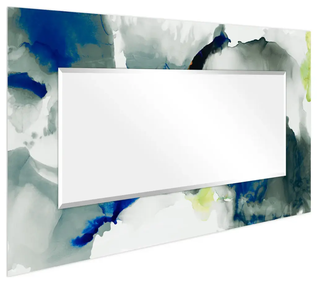 Ephemeral Rectangular Beveled Mirror On Free Floating Printed Tempered Art Glass